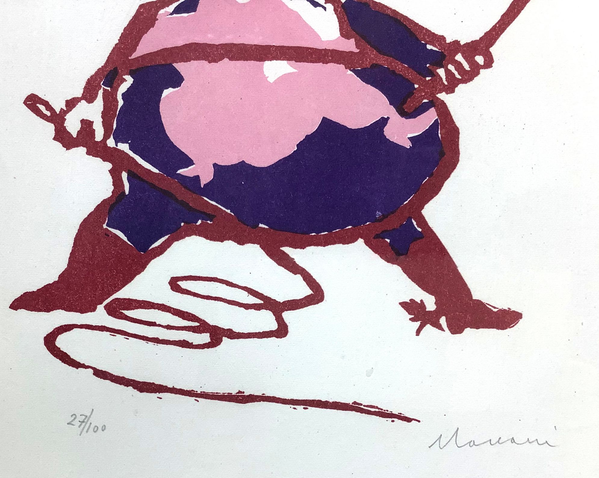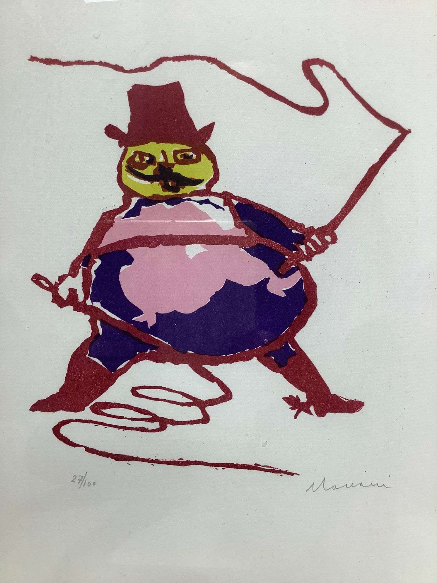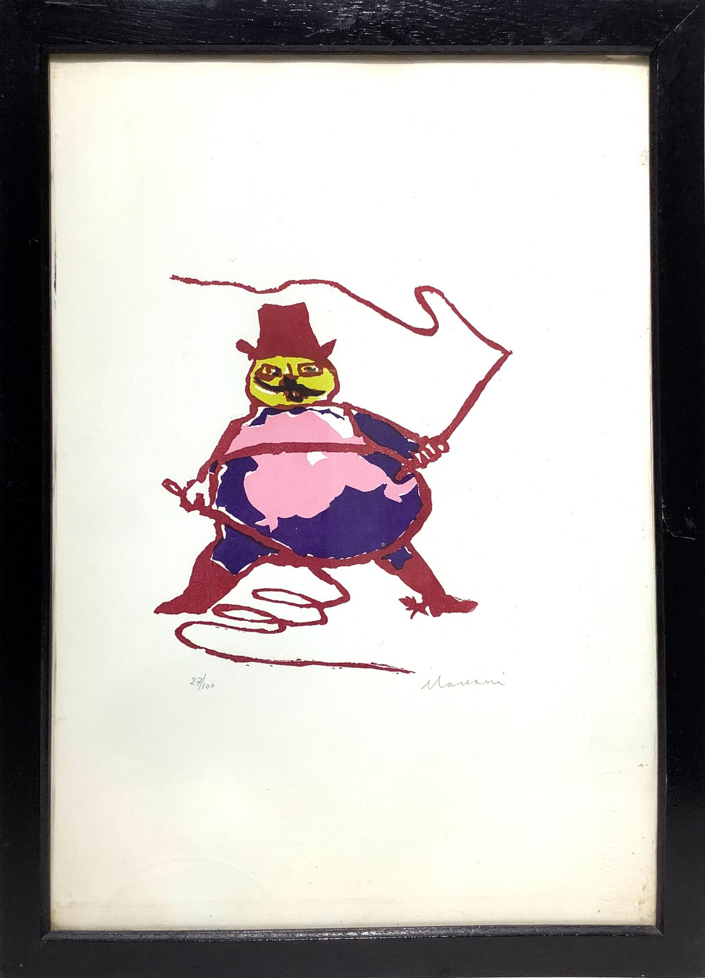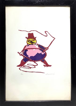 Litografia raffigurante Domatore, attribuito a Mino Maccari (Siena,1898 – Roma,1989), 27/100. Firmato in basso a destra. Cm 50x35.