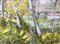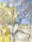 Dipinto ad olio su tela raffigurante paesaggio di Morra con alberi, Elio...