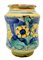 Albarello in maiolica di Caltagirone con decori floreale sul fondo blu...