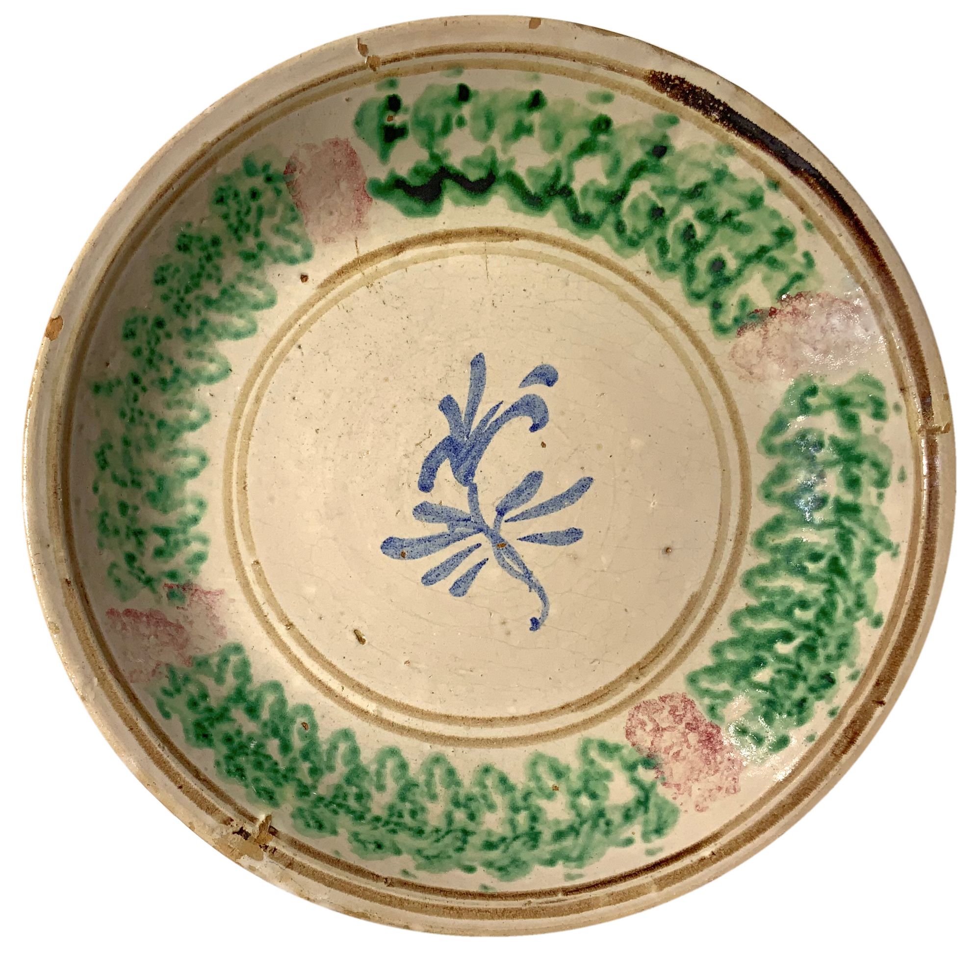 Piatto in maiolica di Caltagirone, XX Secolo. Decorato con fiore. Cm 33