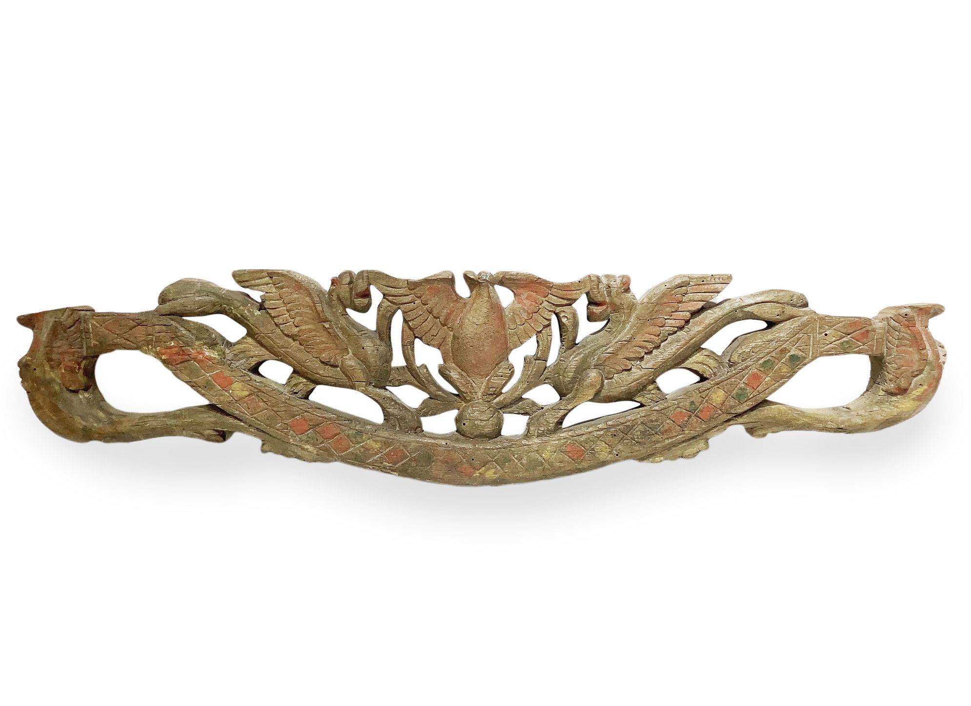 Antica chiave di carretto in legno scolpito policromo, fine del XIX secolo,...