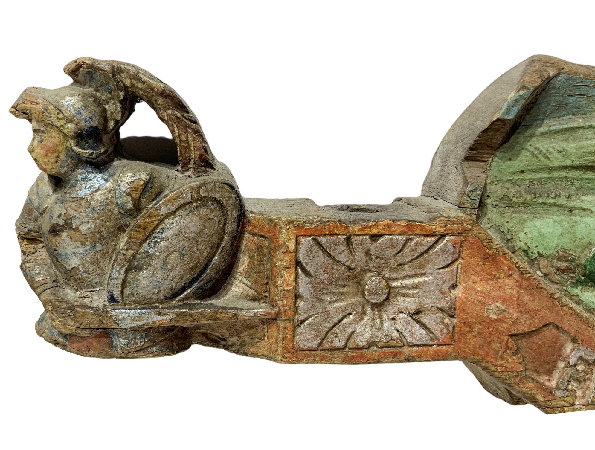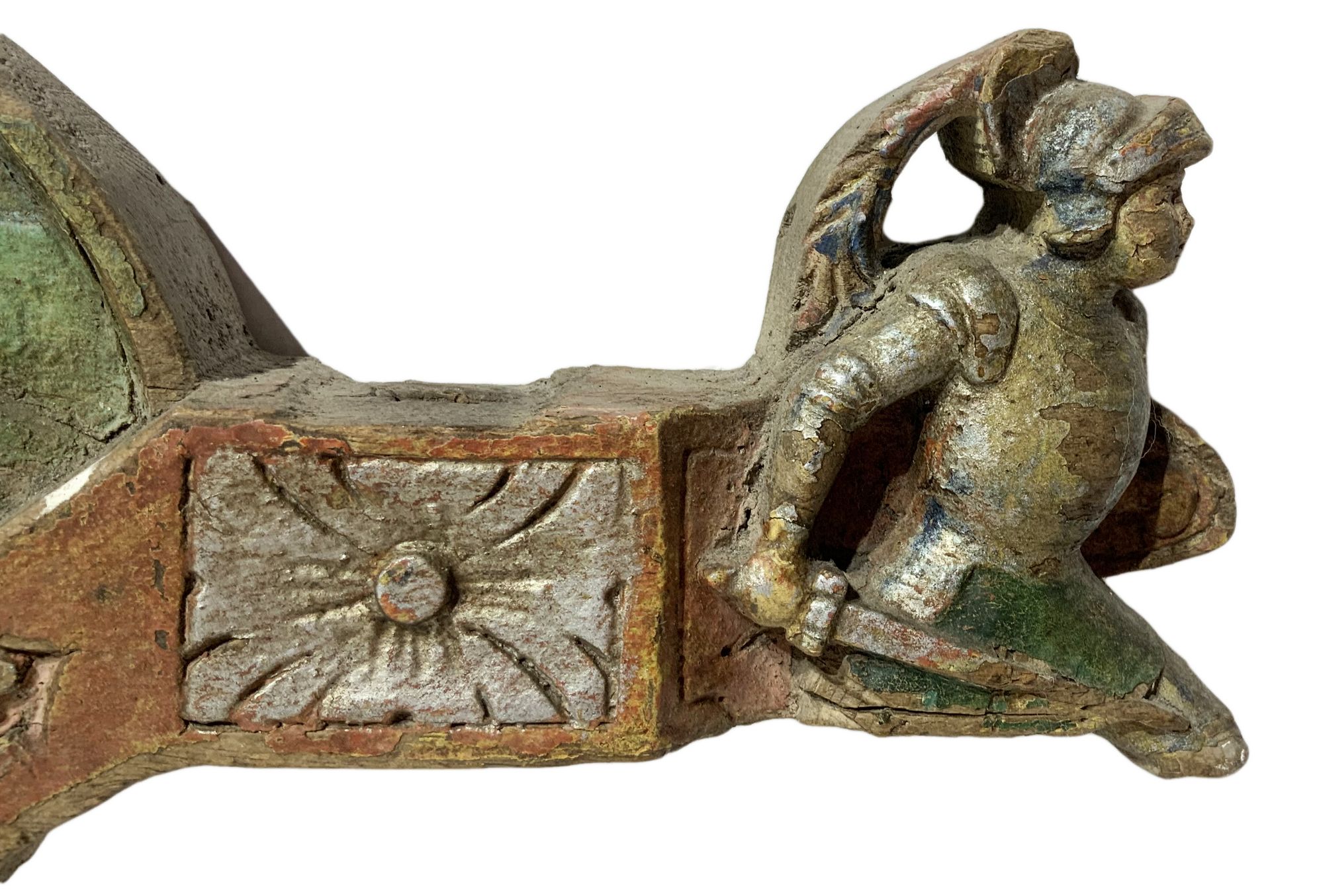 Antica chiave di carretto in legno scolpito policromo fine del XIX secolo,...