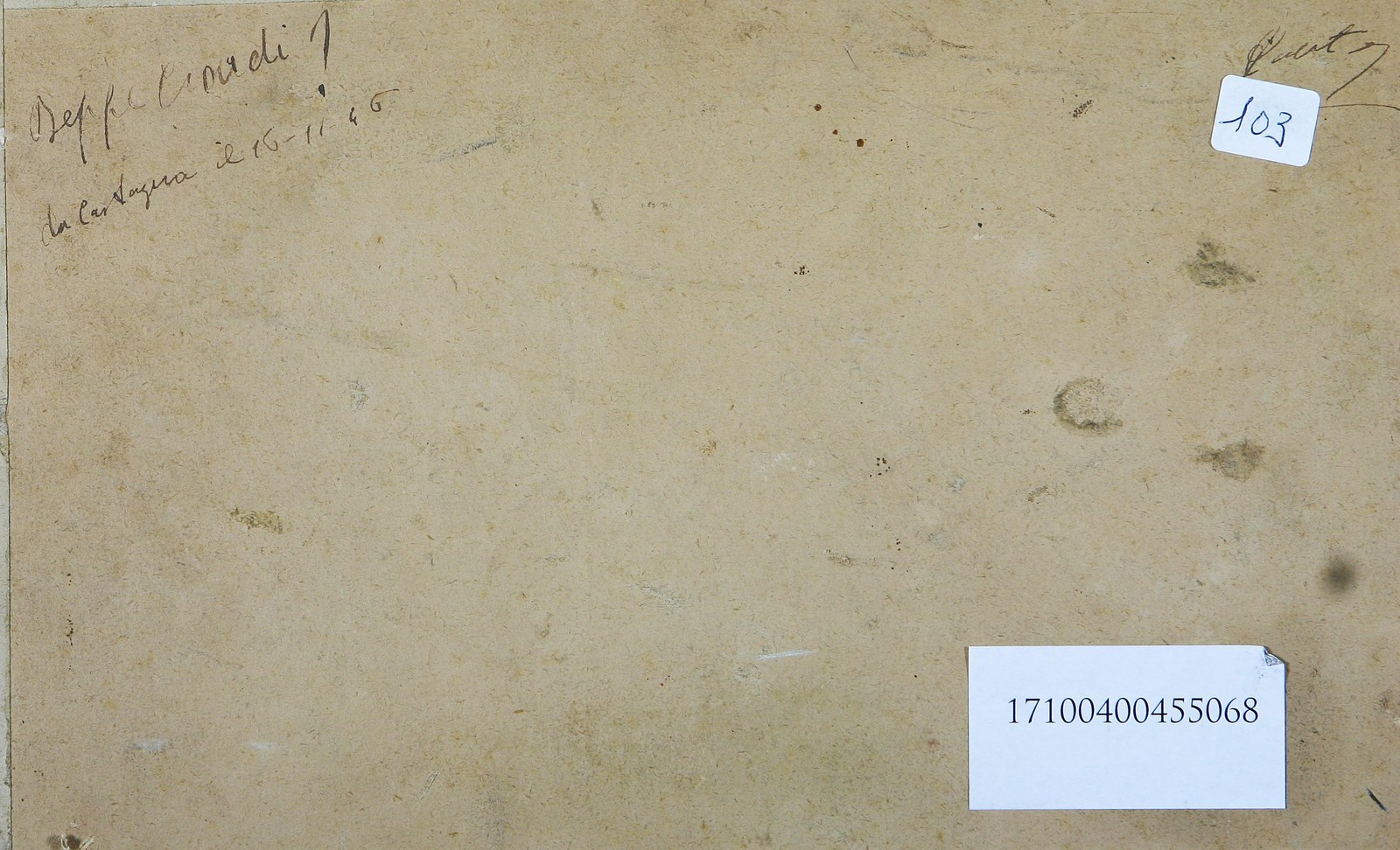 ANONIMO Paesaggio. 1611. Olio su cartone. Cm 33,50 x 21,00.