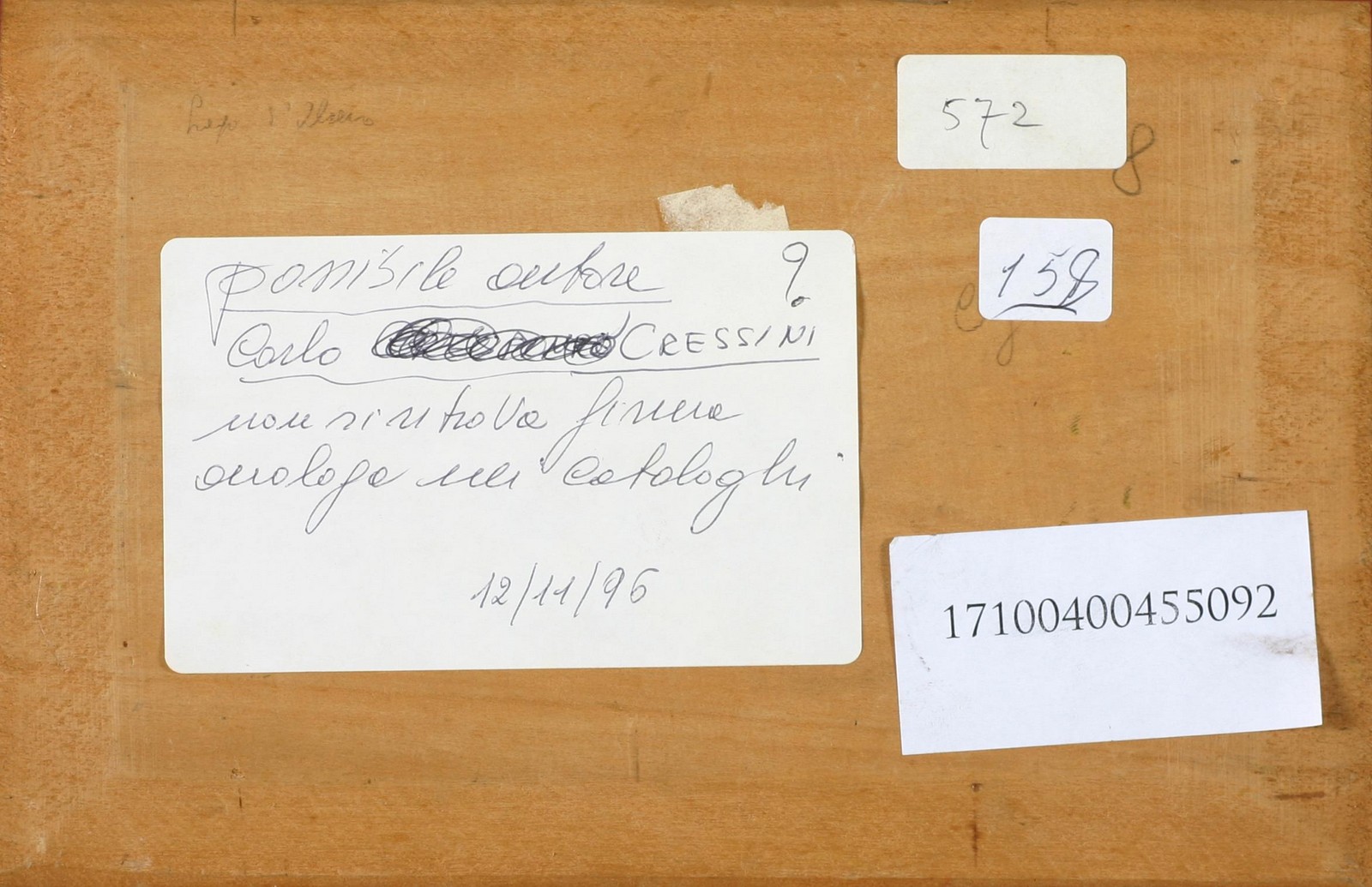 CRESSINI CARLO (1864 - 1938) Paesaggio al tramonto. olio su tavoletta. Cm 23,00 x 15,00. Firma in basso a sinistra. Cornice presente
