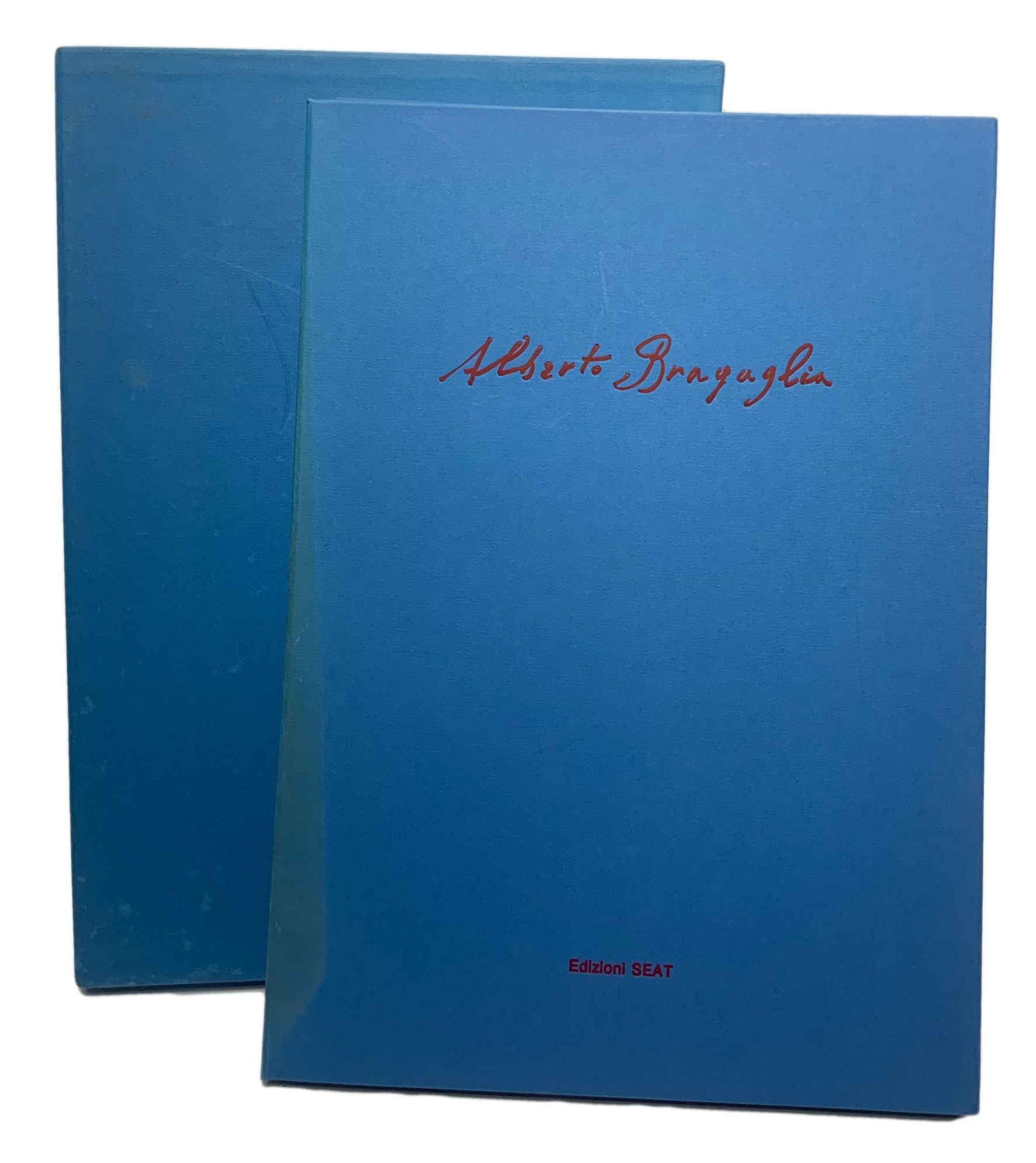 “Alberto Bragaglia” di Carmine Benincasa. Edizione Seat, anno 1990. Legatura unbound, pagine 60, 10 illustrazioni a colori. 40x60 cm. Ottimo stato. Cartella rigida di grande formato. Raccolta di opere di Albero Bragaglia (Roma, 1896 – 1958). Formato in folio 30 – 38 cm. Carte senza rilegatura. Opera completa in ottime condizioni.