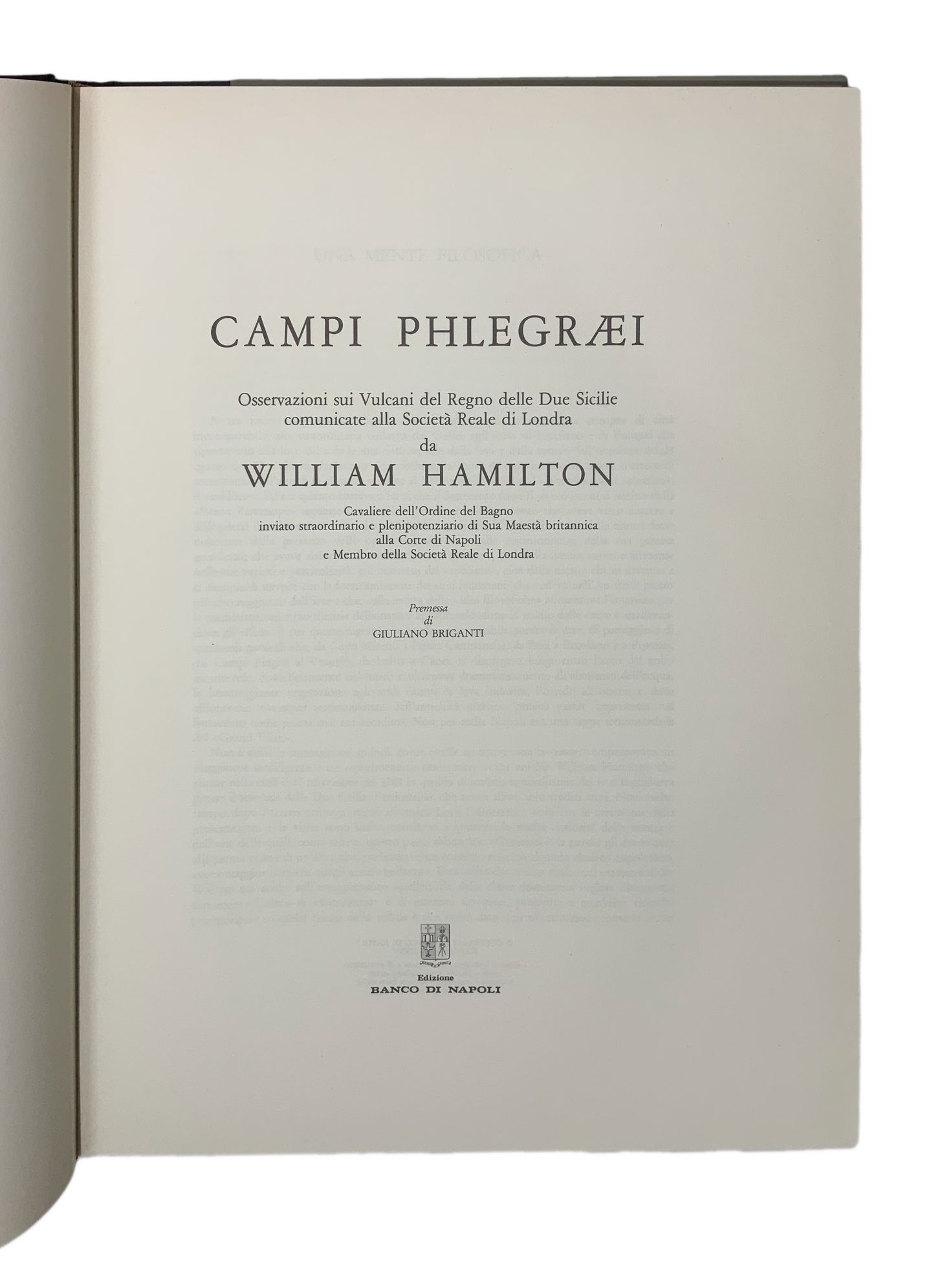 Campi Phlegraei - William Hamilton. Edizione Banco Napoli, anno 1985. Ottime condizioni. Legature in mezza pelle, bellissime tavole a colori a piena pagina. 15 pagine + 90 + 59. Premessa di Giuliano Briganti.