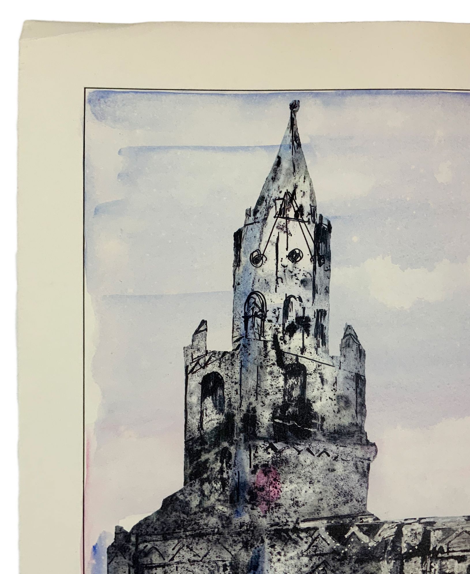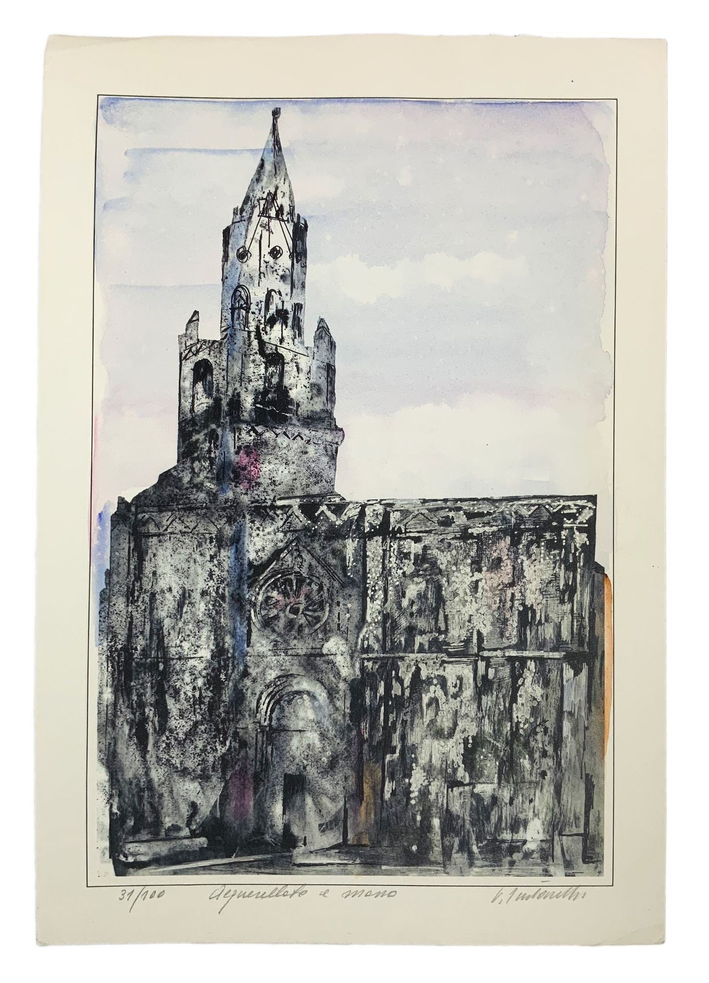 Incisione acquarellata a mano della Cattedrale Santa Maria Assunta in Roma di Benanzio Tentarelli. Cm 49x34.
