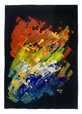 Disegno astratto di Francesco Bucci, tempera su carta nera, firmato Bucci e datato ‘85 in basso a destra. Cm 50x35.