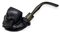 Il bocchino, in ebanite di colore nero, presenta un grosso rigonfiamento a fascia nel punto di inserimento al cannello.