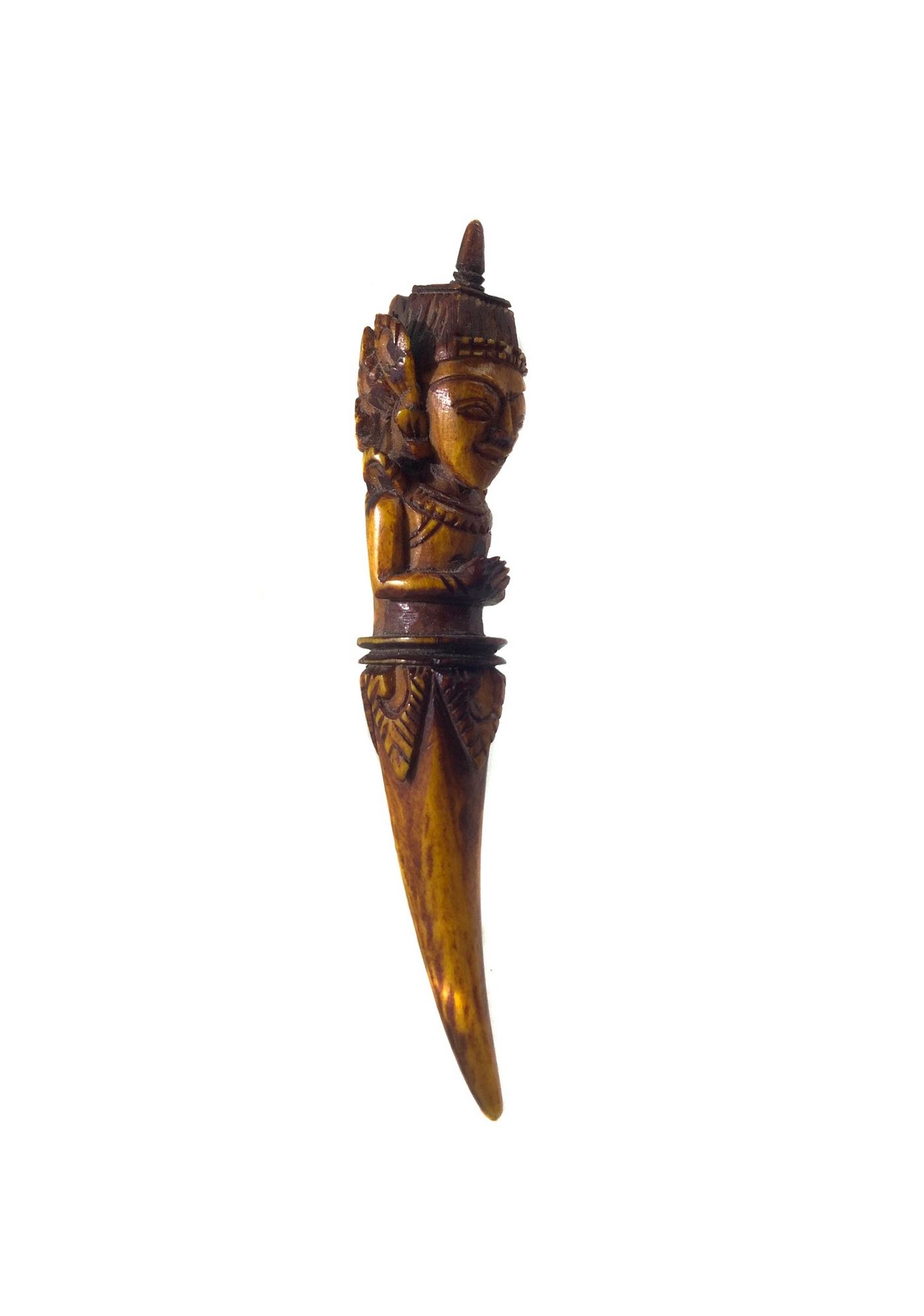 Amuleto con busto di divinità orientale e simboli magico-apotropaici. - In avorio. Nepal. Prima metà del 1700.
