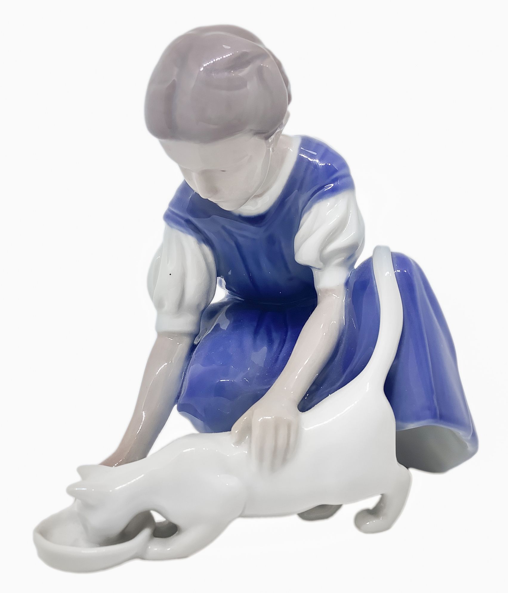 Statuetta Copenhagen, B & G, Ragazza con gatto. H cm 14