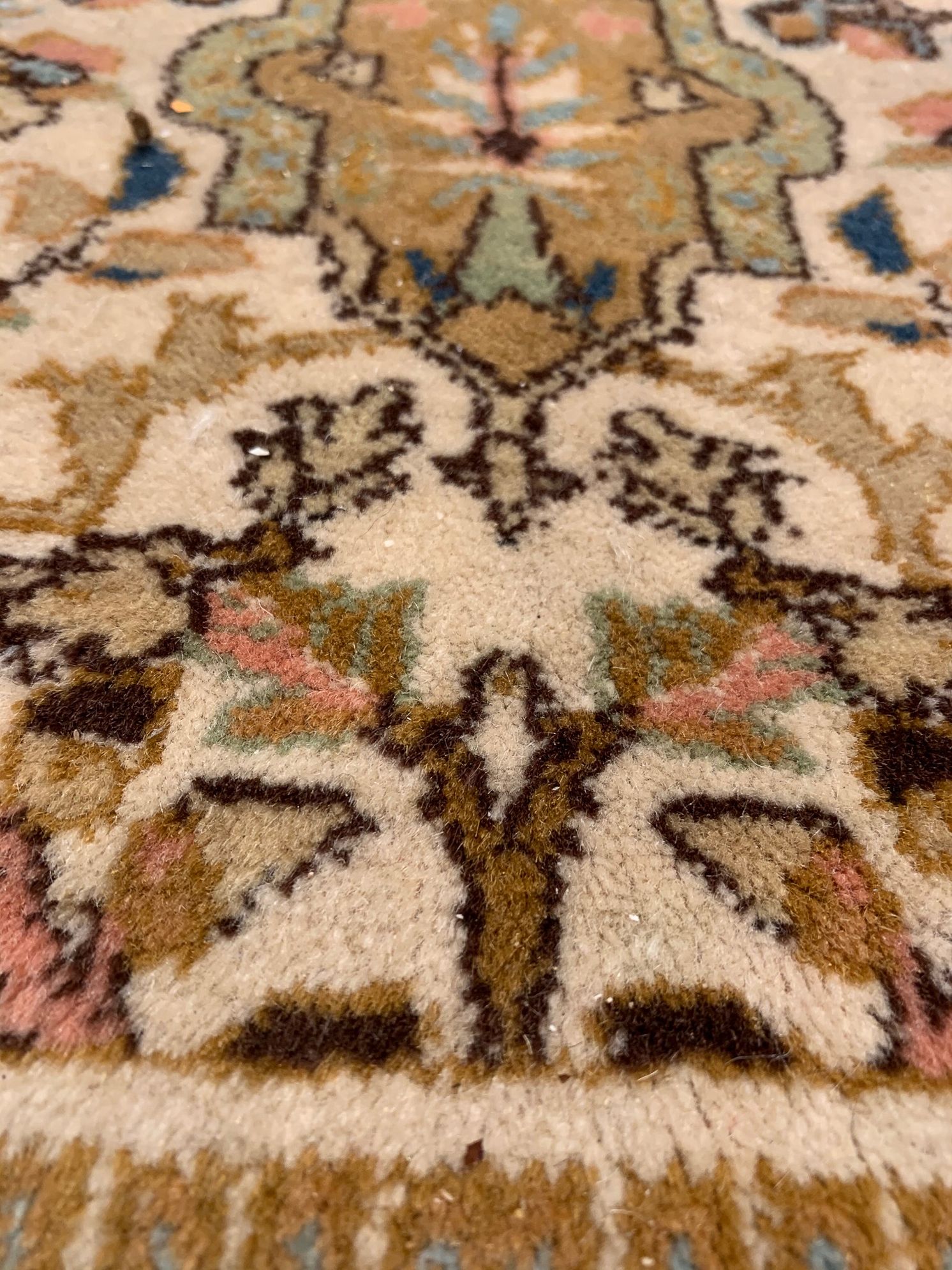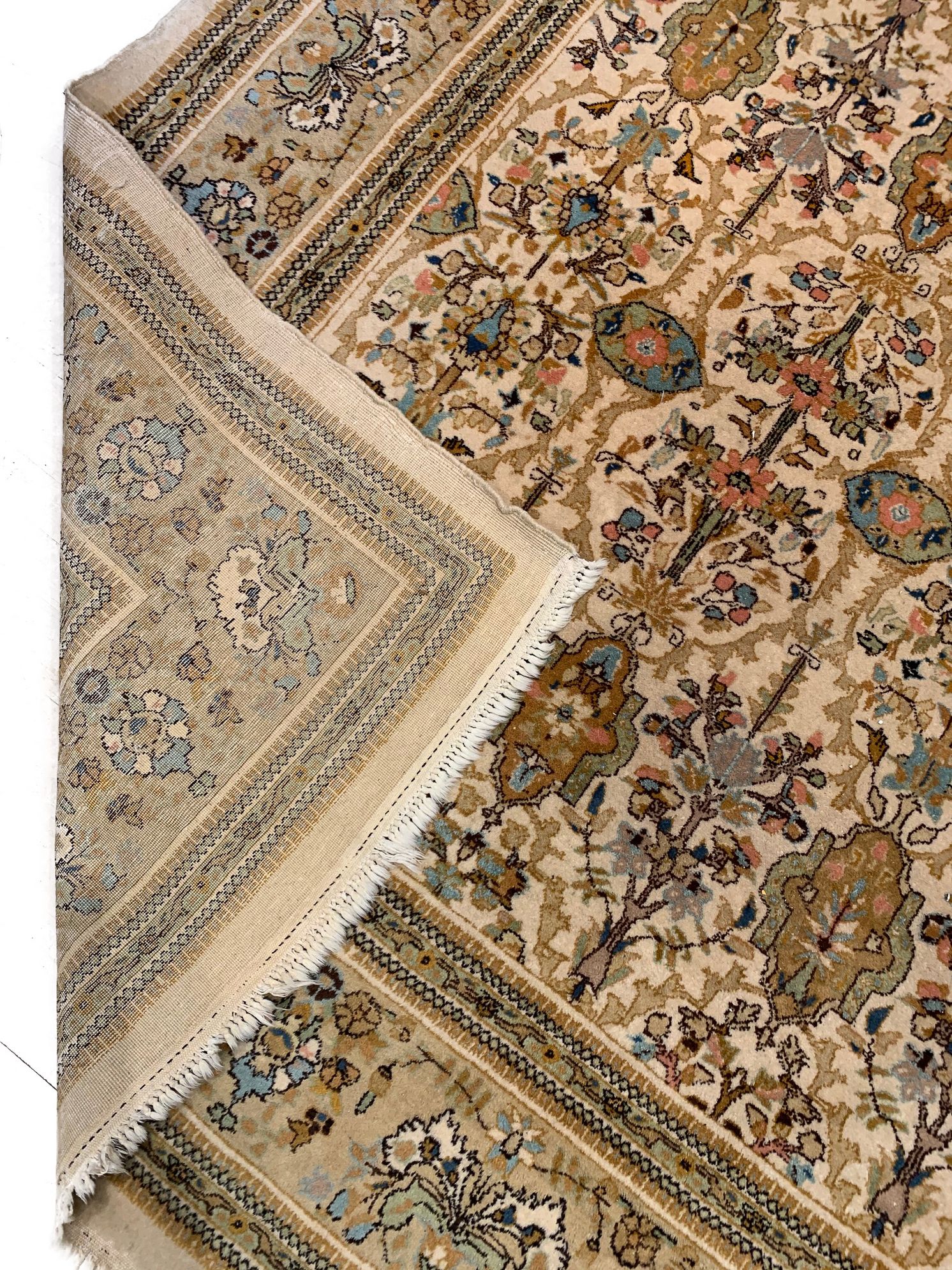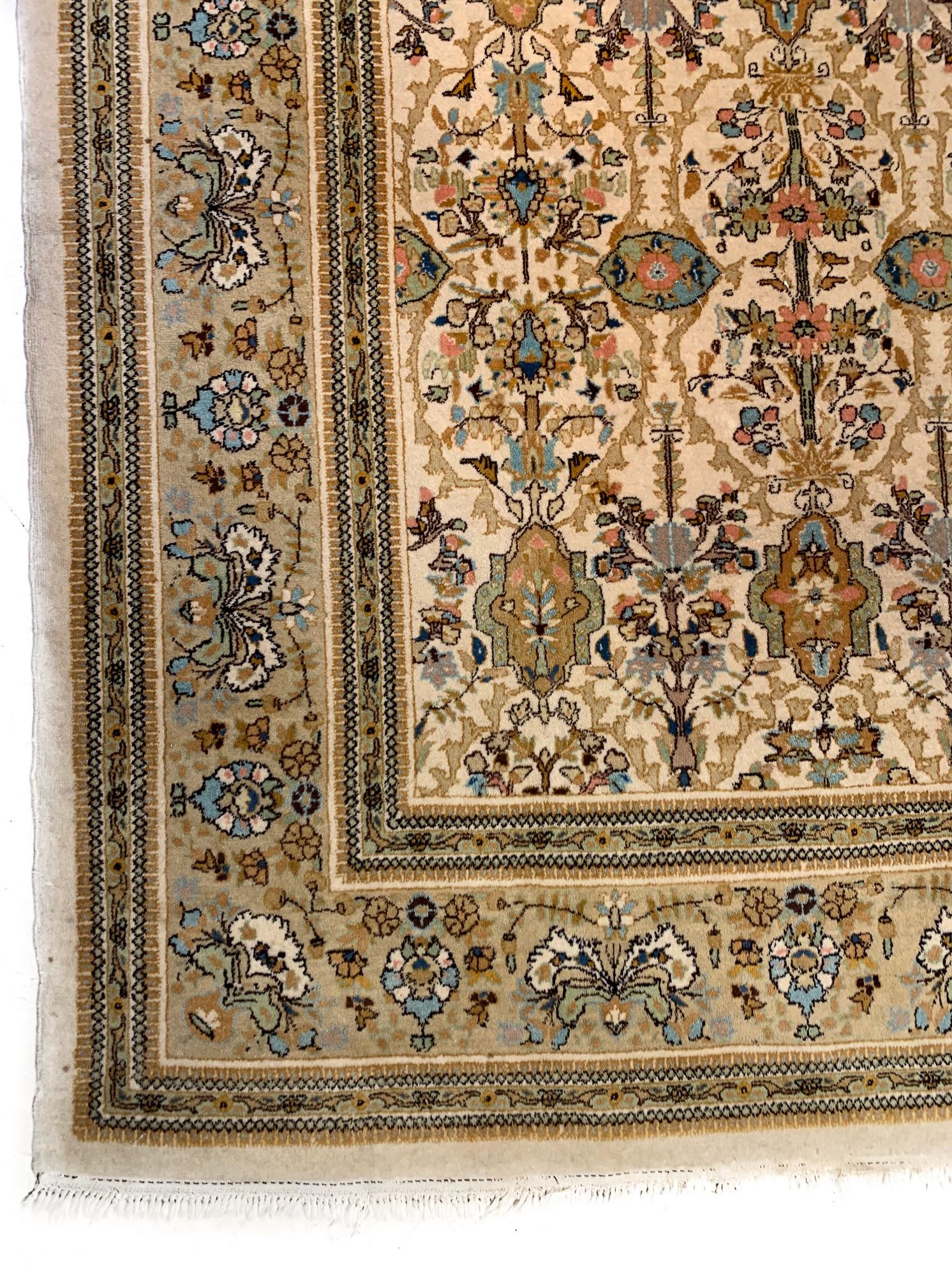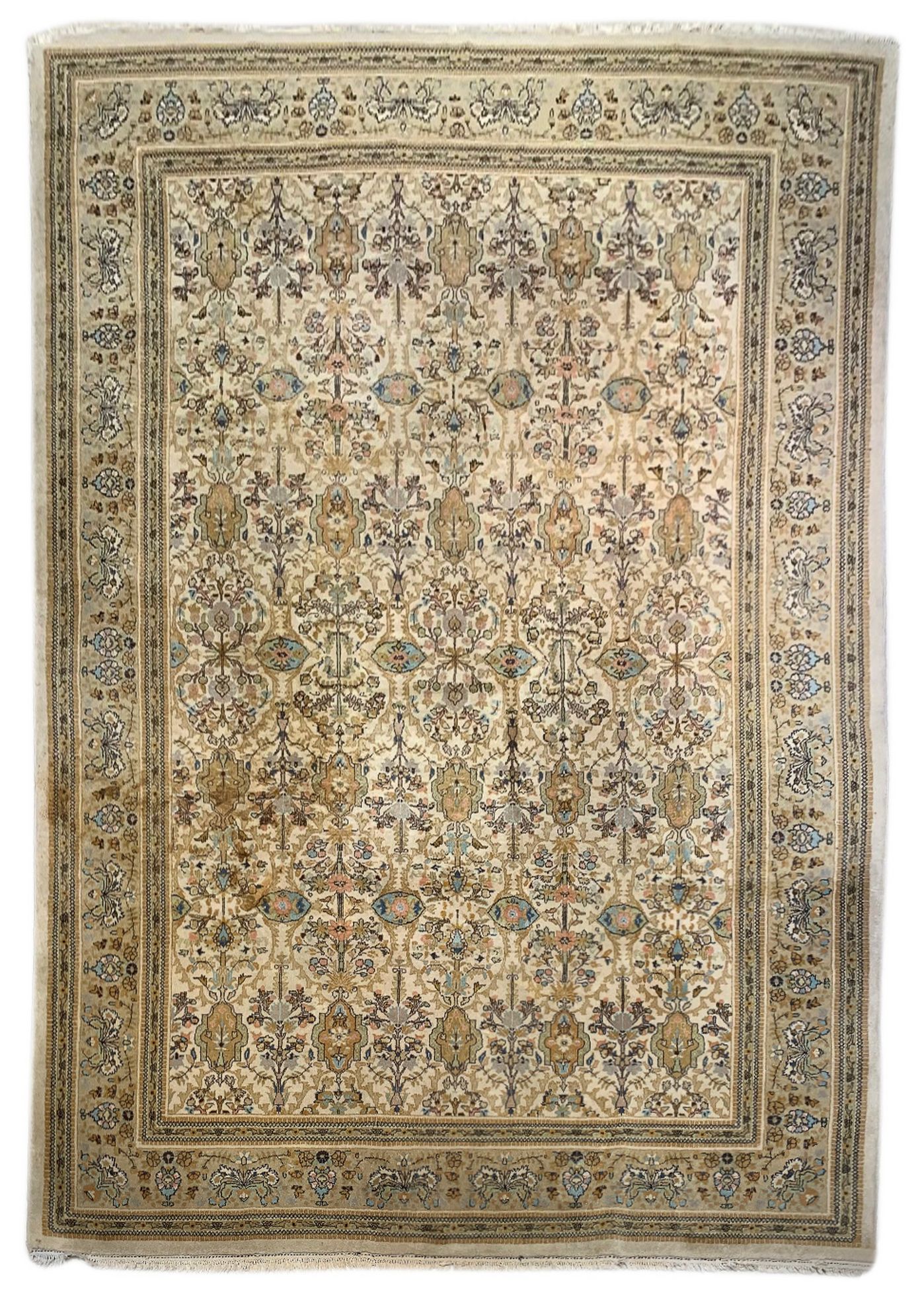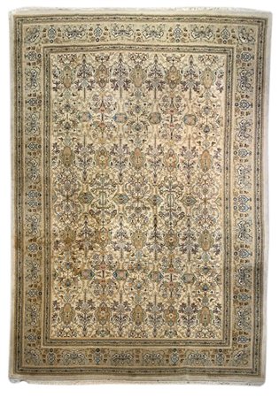 Tappeto Kirman, Persia Meridionale, 1970 ca, cm. 318 X 220, molto buono lo stato di conservazione. Qualche macchia. Annodatura molto fine, elegante composizione modulare infinita a tutto campo