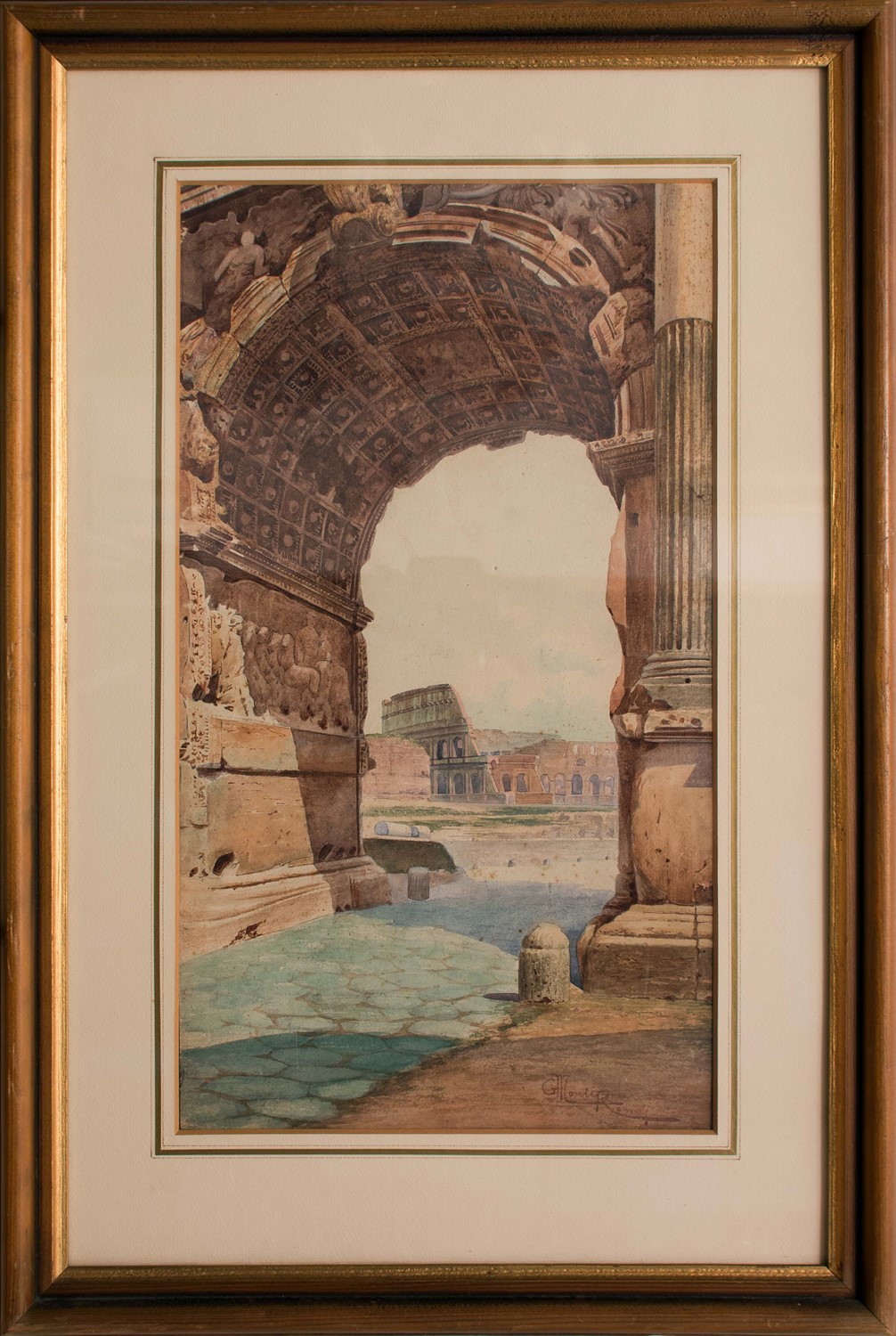 Giovanni Monti (Fusignano 1779-Roma 1844) - Veduta del Colosseo dall'Arco di Tito