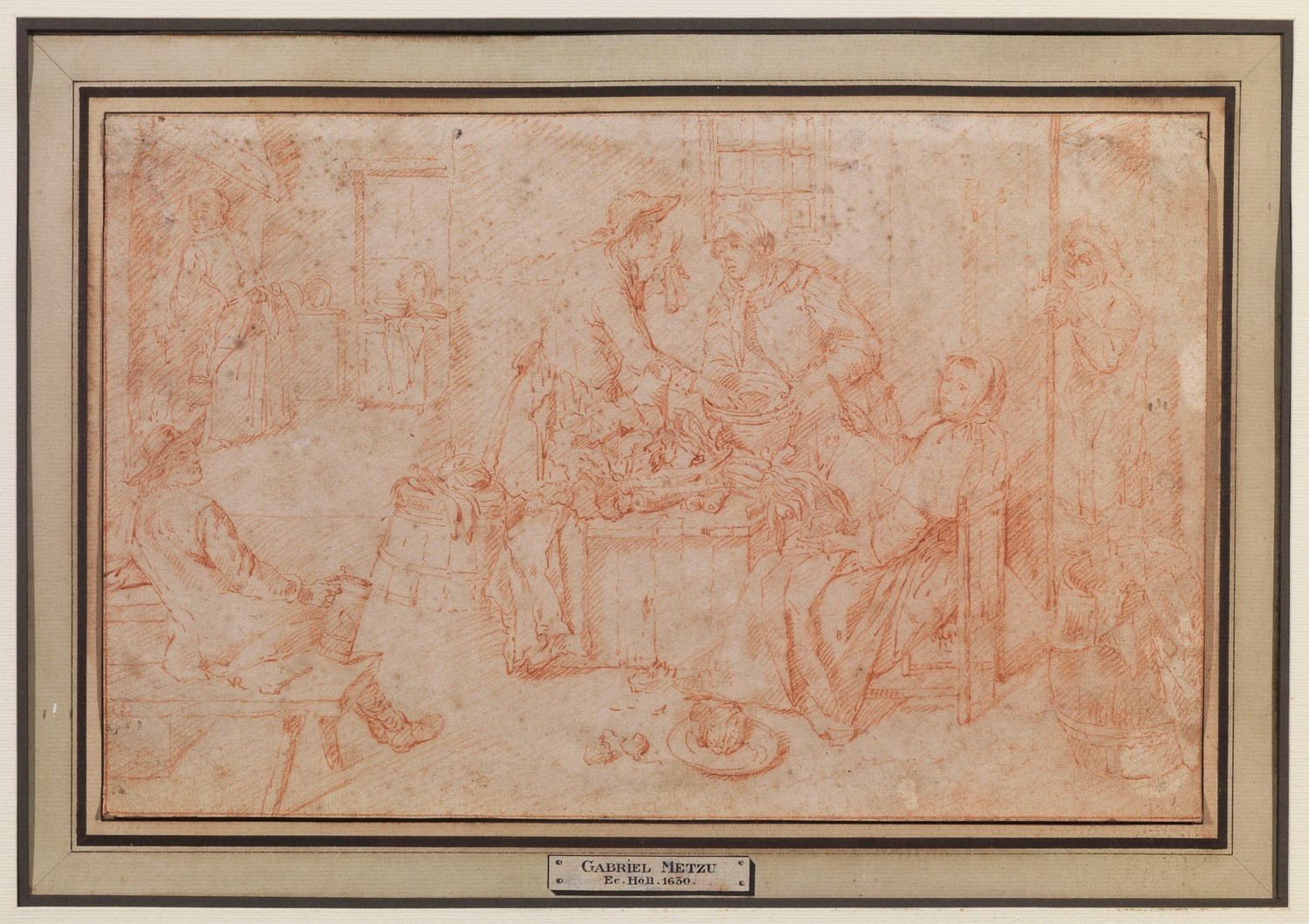 entro il cartiglio del passepartout di collezione francese: Gabriel Metzu/Ec. Holl. 1630.