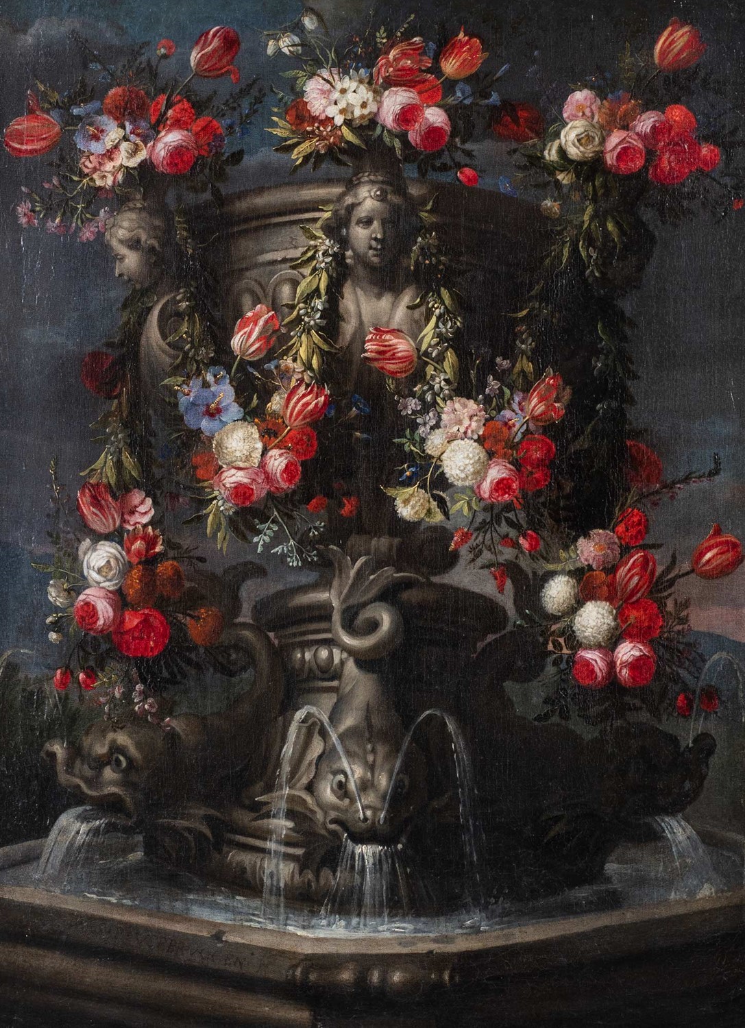 Gaspar Peeter II Verbruggen (Anversa 1664-Anversa 1730) - Fontana monumentale con ghirlande di fiori