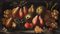 Scuola dell'Italia centrale, secolo XVII - Susine, uve bianche, fichi, gelsomini e una rosa su un piano