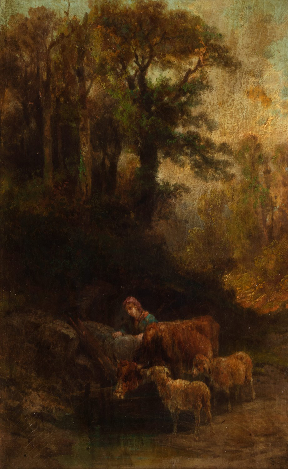 S. Mazza (Scuola italiana seconda metà del XIX secolo) - Pastorella che fa abbeverare gli animali