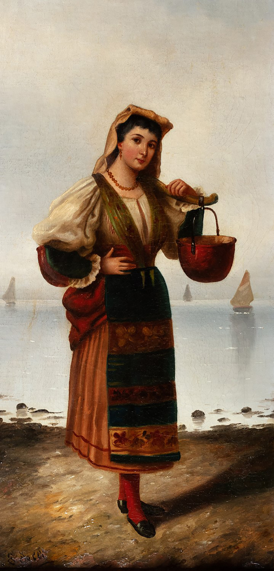 Ernesto Jolli (Scuola italiana fine del XIX secolo) - Coppia di dipinti con giovani popolane