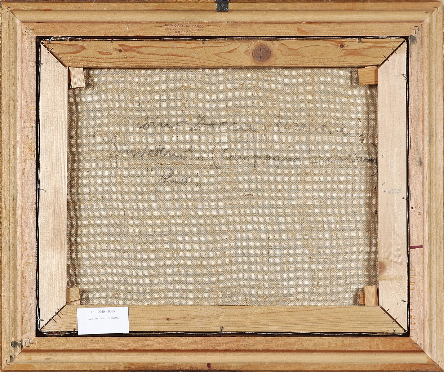 DECCA DINO (1935 - 2005) Inverno, Campagna bresciana. Olio su tela. Cm 51,00 x 41,00. Firmato in basso a sinistra, Titolo e firma al retro. Cornice presente