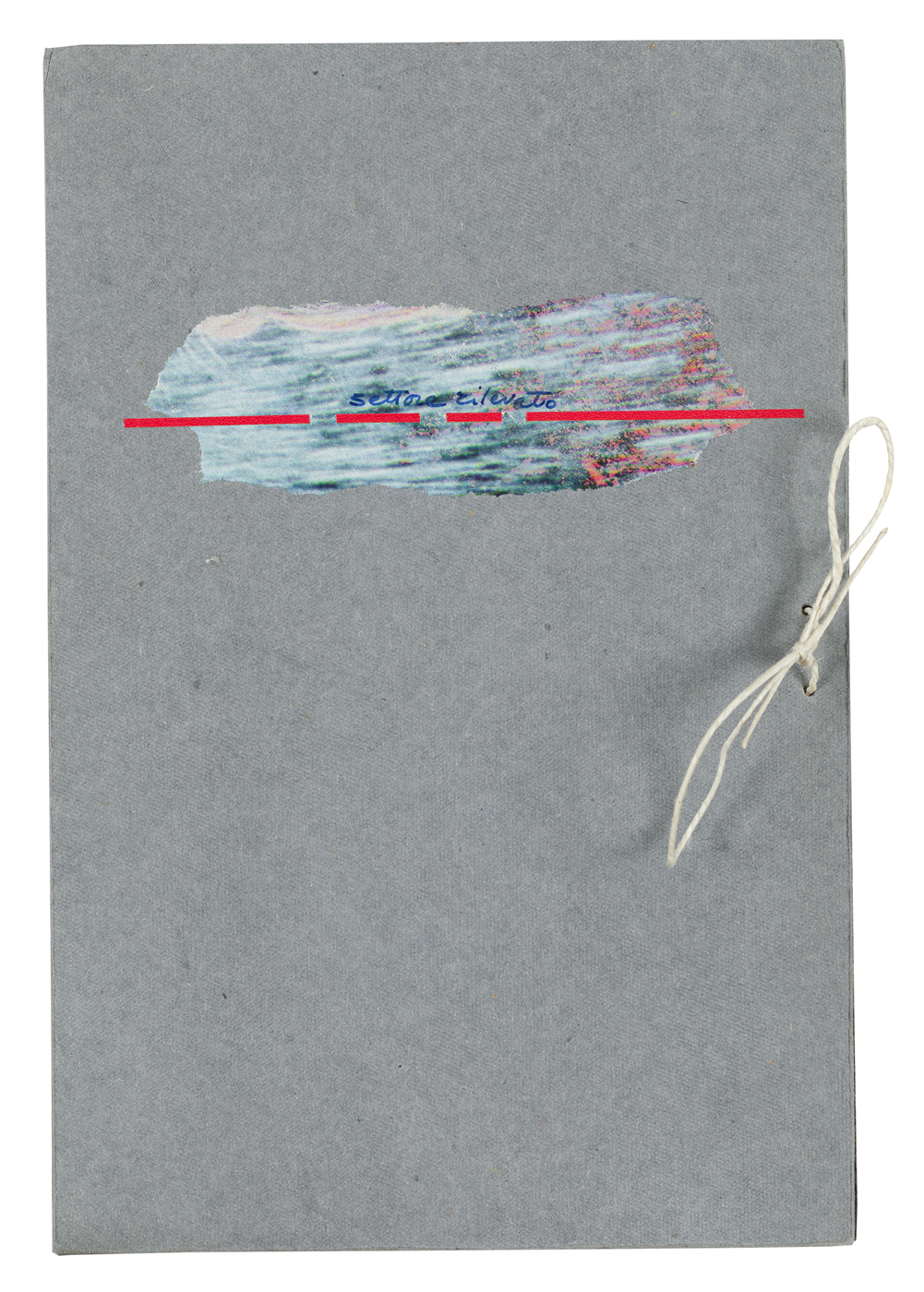 Tecnica mista, collage, applicazioni e carta lucida applicata su cartone a libro