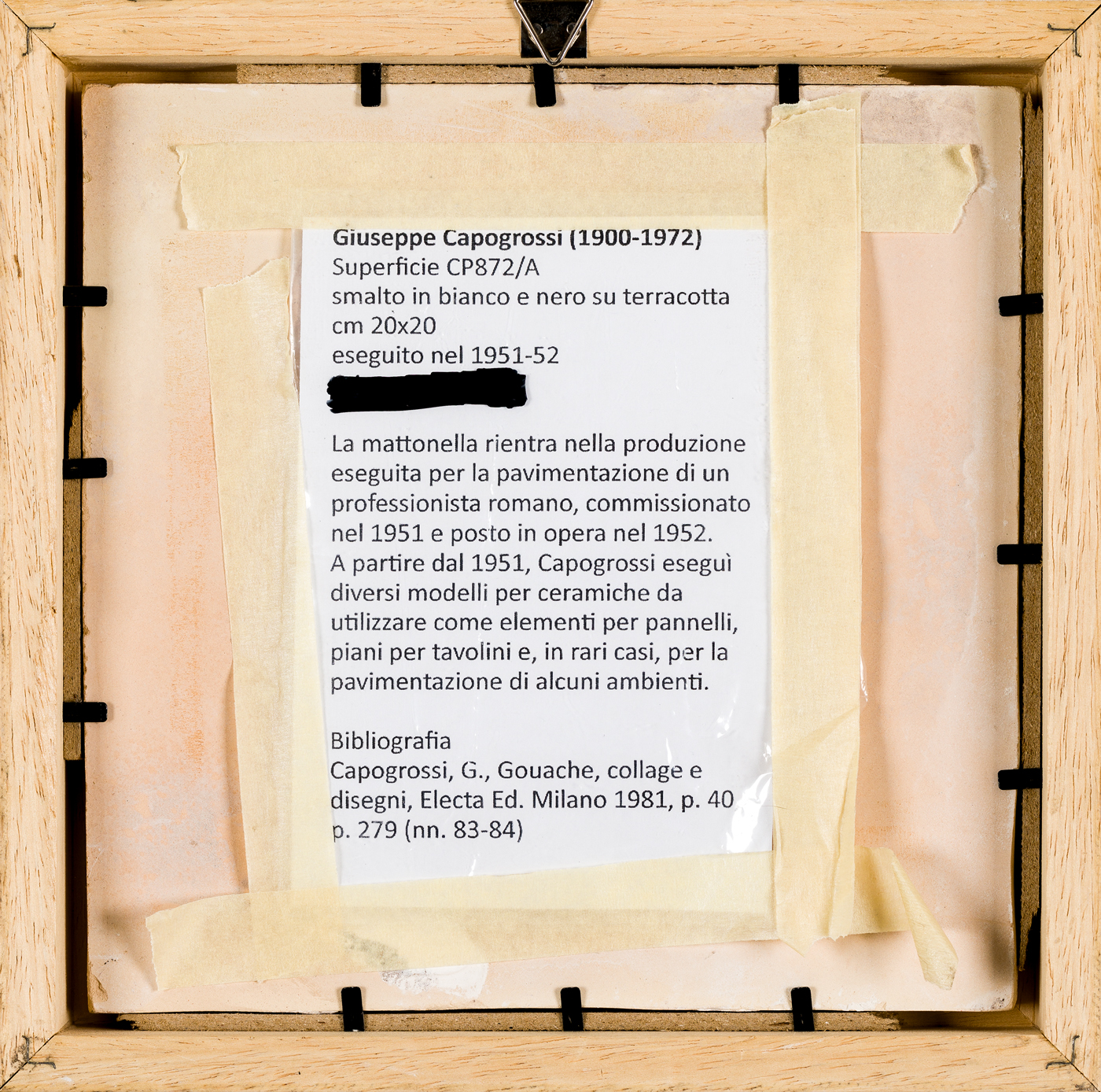 La mattonella rientra nella produzione eseguita per la pavimentazione di un professionista romano, realizzata tra il 1951 e il 1952