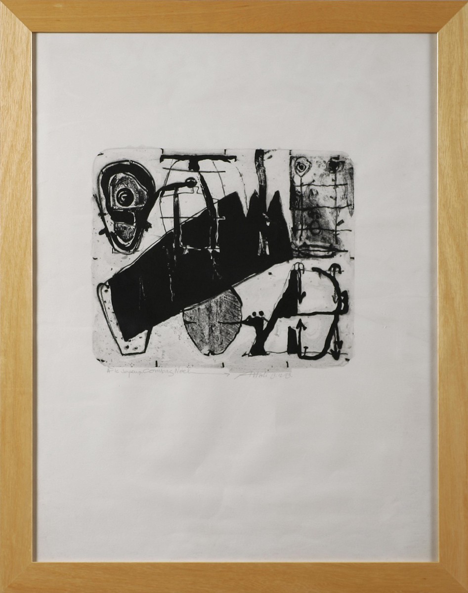 ATTALI JEAN (n. 1937) Senza titolo. 1993. Acquaforte. Cm 50,50 x 66,00. Tiratura non indicata. Firma data e dedica in basso a matita. Cornice presente