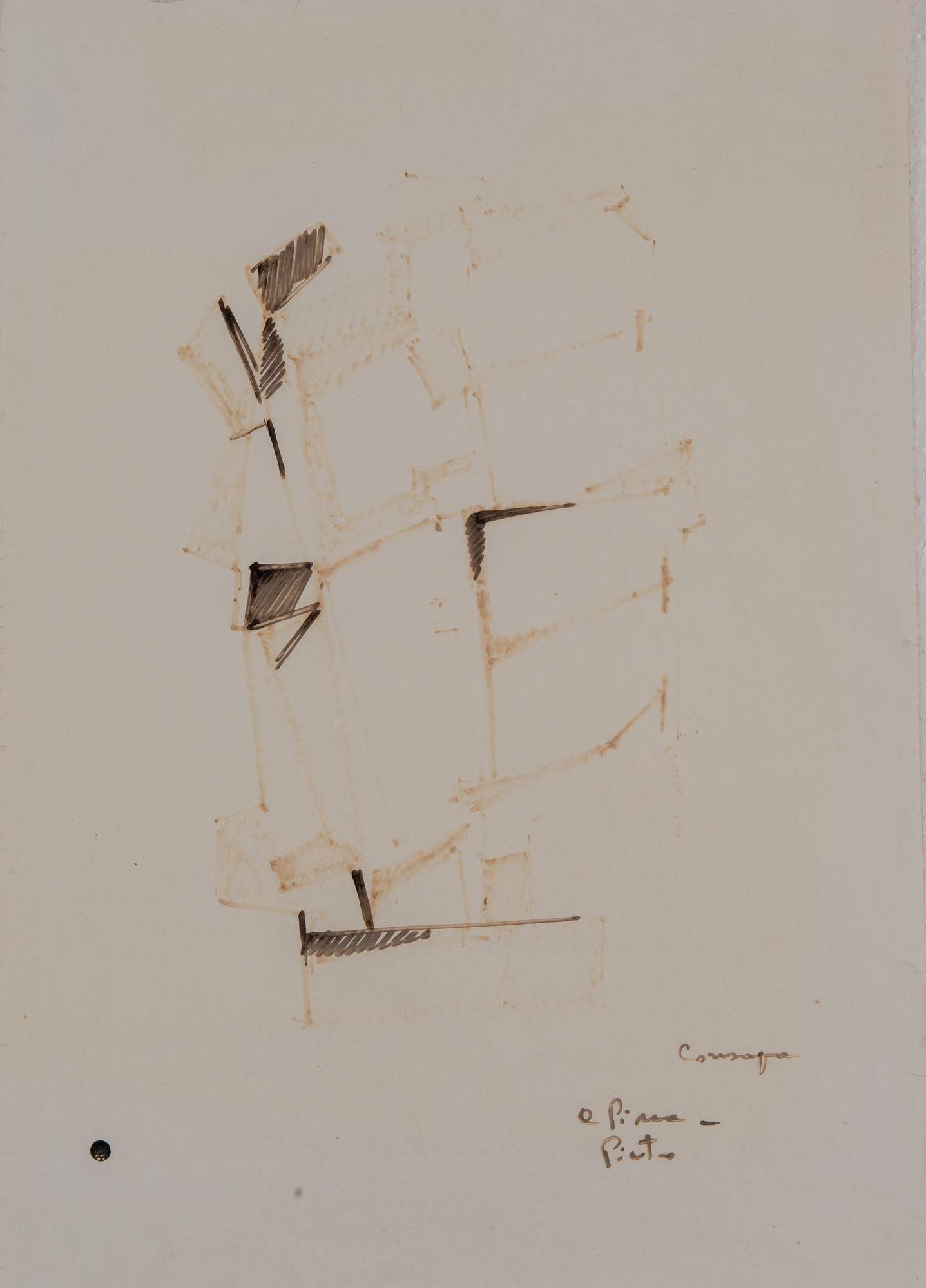 PIETRO CONSAGRA (Mazara del Vallo 1920 – Milano 2005) “Senza titolo”, fine anni ’40 – inizio anni ‘50. Pennarello su carta. Cm 51x35,5. Opera dedicata e firmata in basso a destra Consagra. Provenienza: importante collezione privata, Bologna. Opera regalata dall’artista all’attuale proprietà.