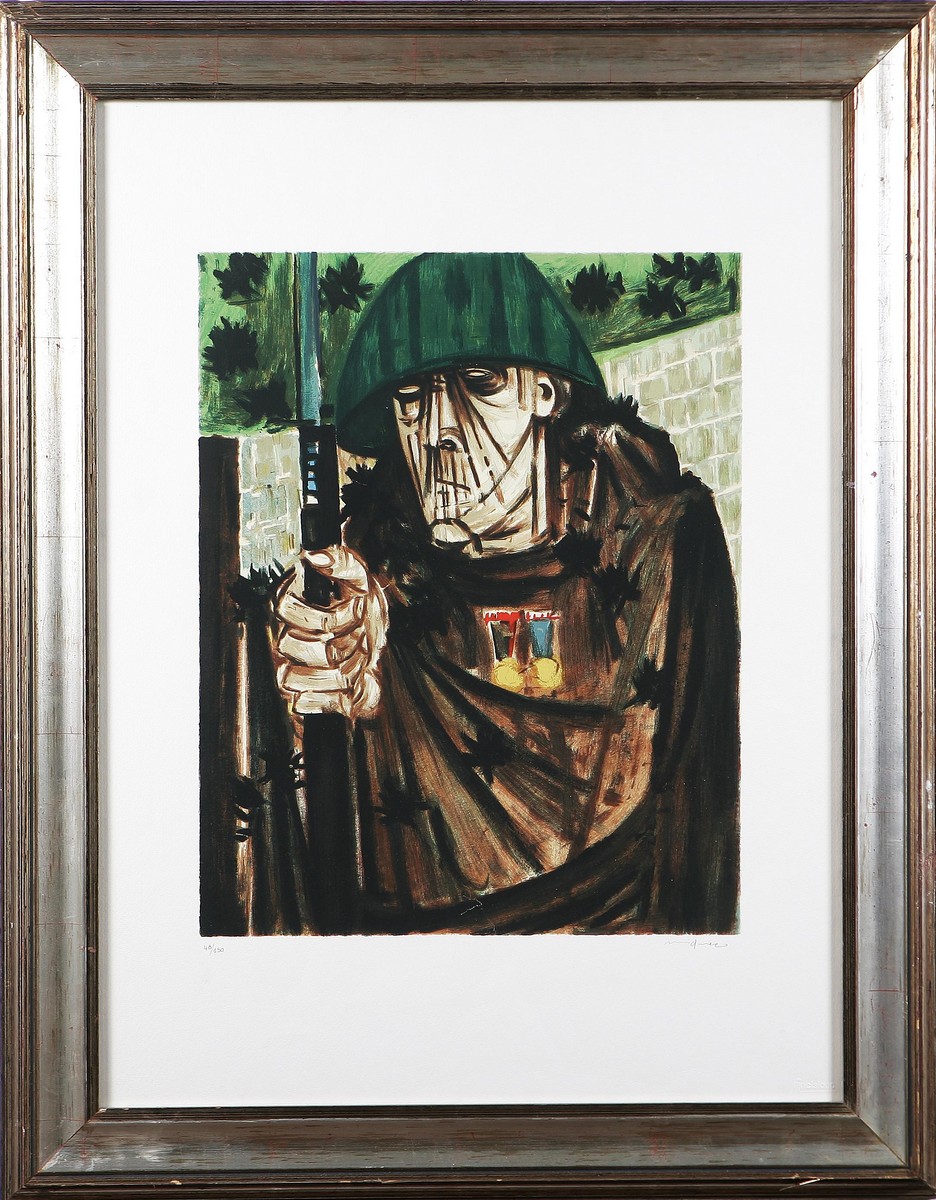 MIGNECO GIUSEPPE (1908 - 1997) Senza titolo. Litografia. Cm 60,00 x 82,00. Tir. 48/150 in basso a sinistra a matita. Firma in basso a destra a matita. Misure lastra: 53,5x42,5 cm. Cornice presente