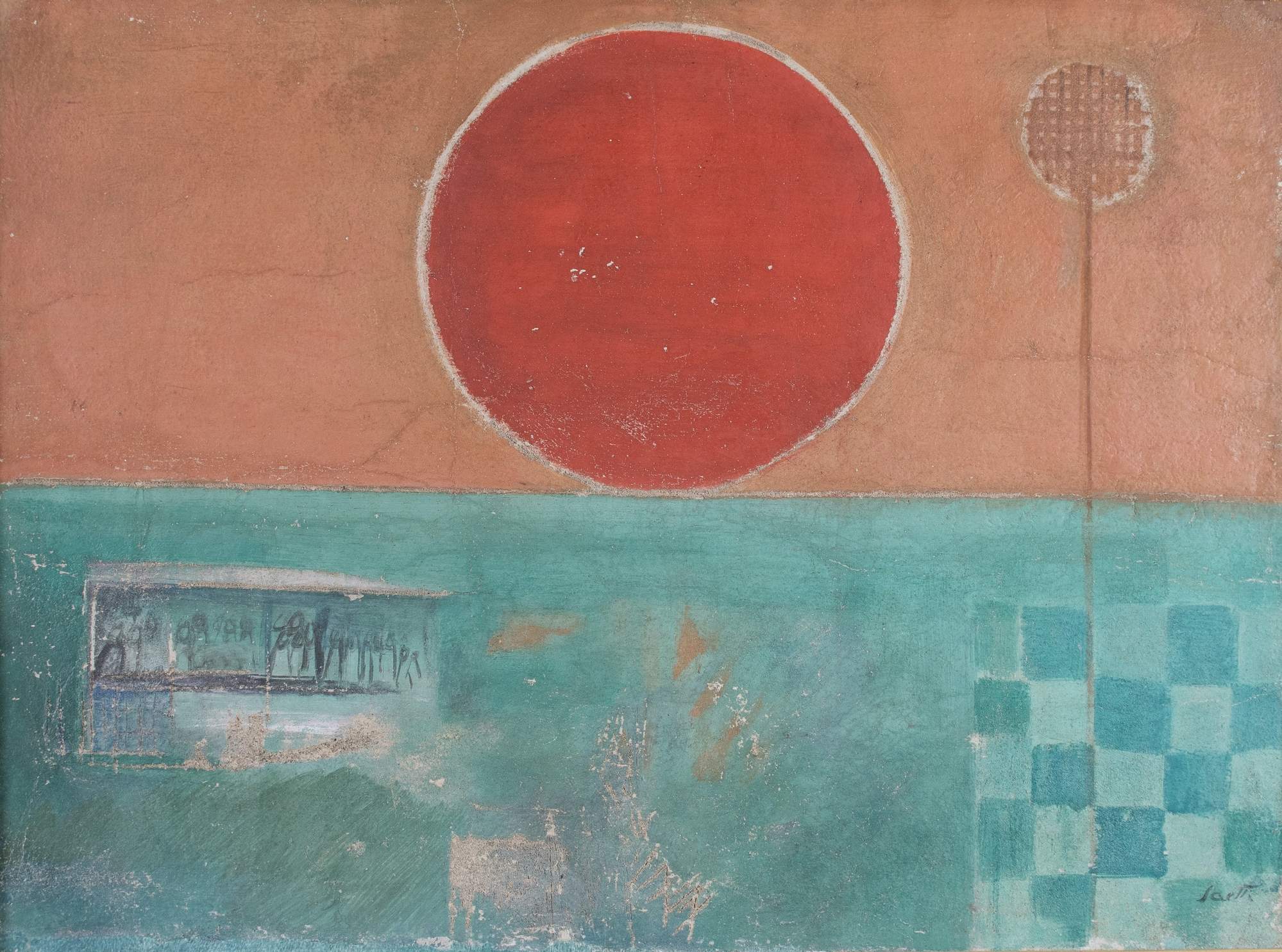 BRUNO SAETTI (Bologna 1902- Bologna 1984). “Paesaggio col sole”, 1970. Affresco su tela. Cm 97x71. Opera firmata in basso a destra Saetti. Reca al retro firma e scritta autografa Affresco, dim 97x71, questo dipinto non deve essere verniciato. Opera accompagnata da autentica su foto della Galleria Del Cavallino (VE) con N. 2428. Opera accompagnata da autentica su foto della Casa d’Aste e Galleria Farsetti Arte N. 65051. Opera pubblicata nel catalogo “Opere D’Arte Contemporanea - Prato 30 novembre - 1 Dicembre 2007 Farsettiarte” asta N. 1421 lotto N. 150. Opera pubblicata alle pag. 126/127 del catalogo ”Maestri della pittura moderna” opere scelte 1988/89 Centro Tornabuoni Firenze”, Opera esposta dal 19 Dicembre 1988 al Centro Tornabuoni di Firenze. Provenienza: Farsetti Arte Prato - Centro Tornabuoni Firenze.