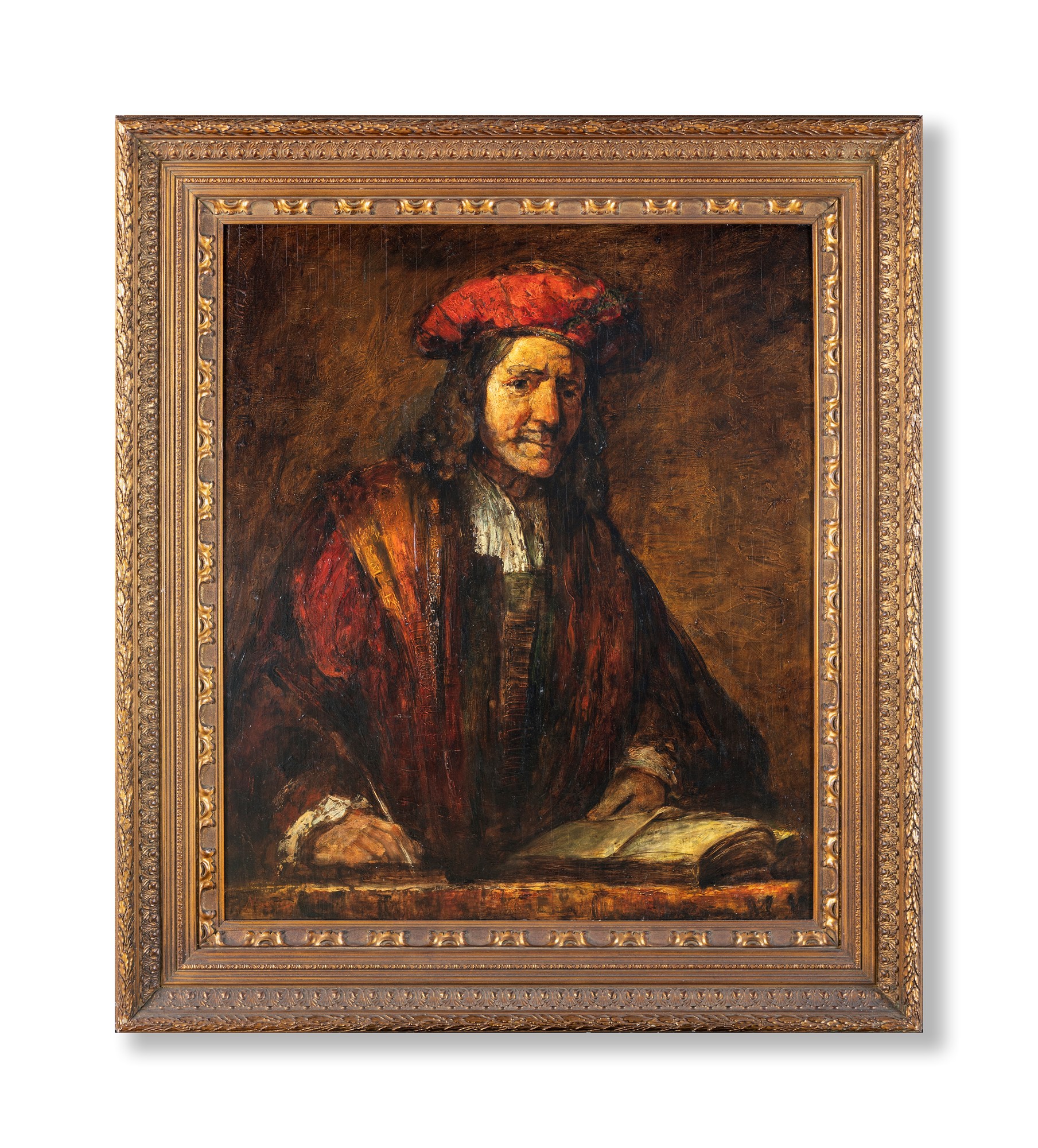 Anonimo del XIX secolo - Ritratto maschile con lettera - Entro cornice in legno dorato - olio su tavola - cm 100x85