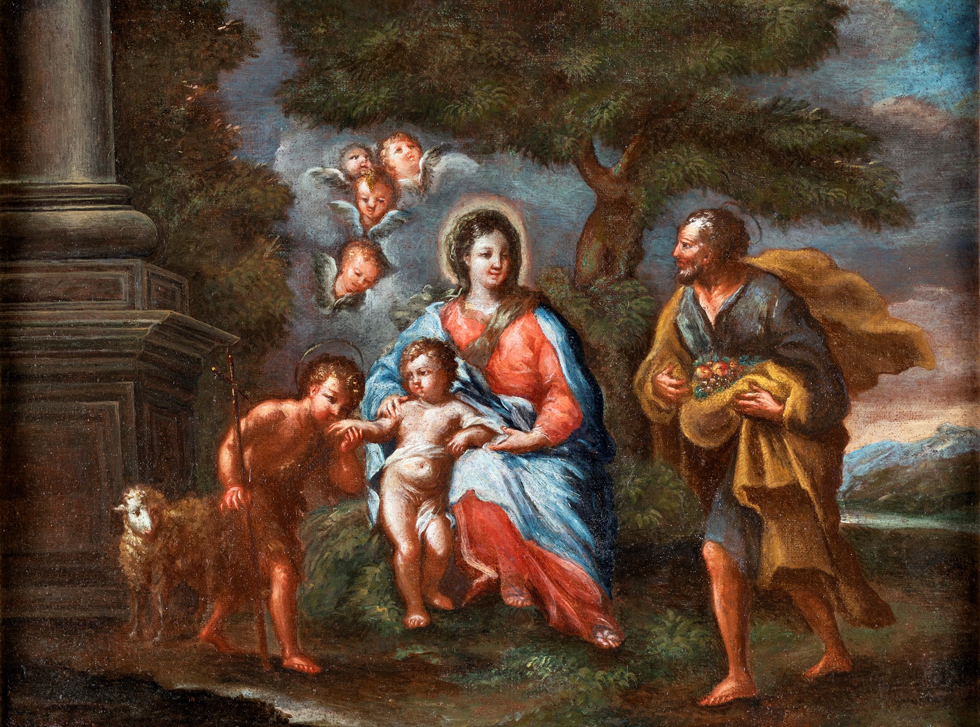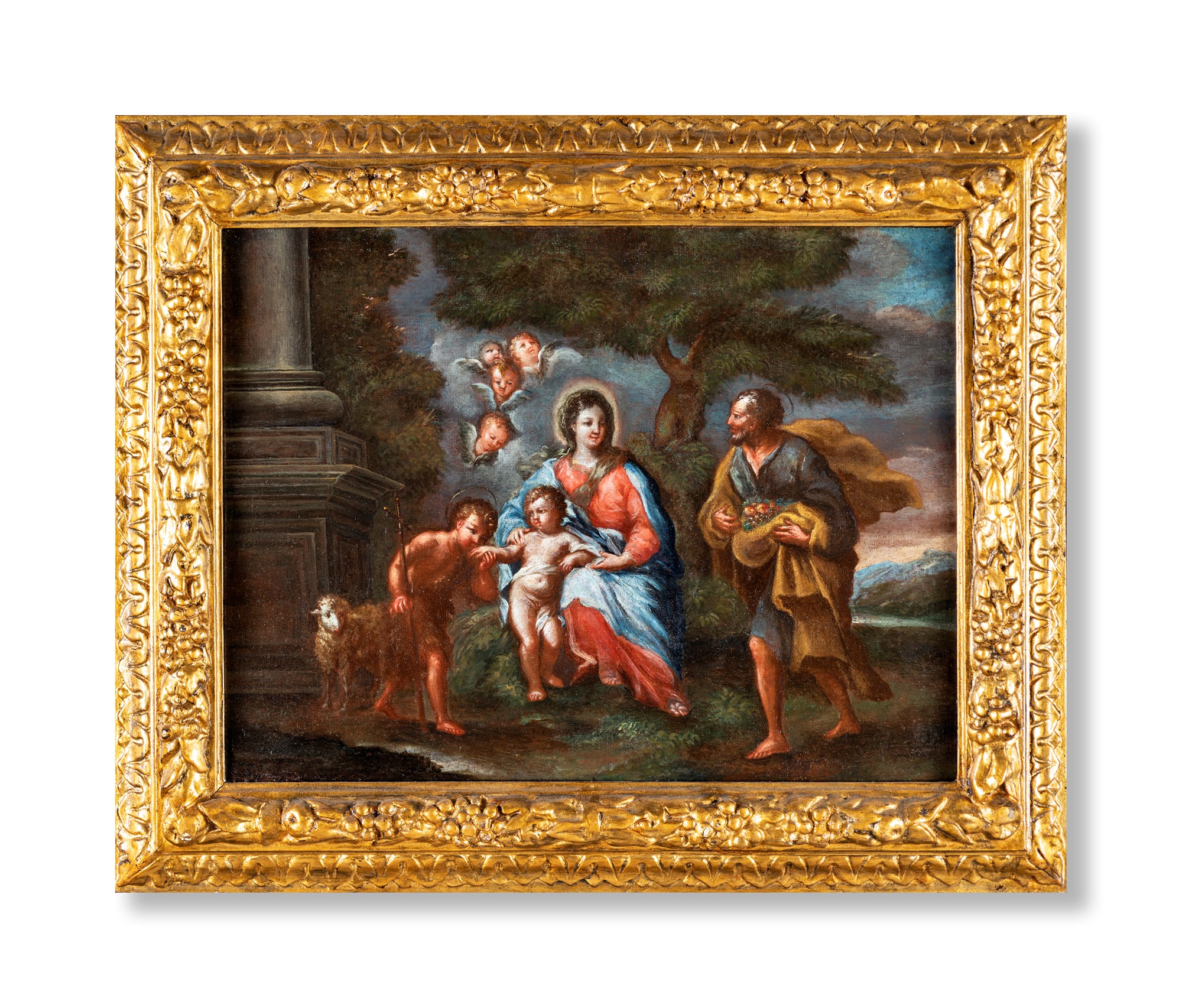 Pittore romano del XVII secolo - Riposo dalla fuga in Egitto - Entro cornice...