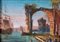 Scuola Veneta del XVIII secolo - Marina con veliero e ruderi antichi - Entro...