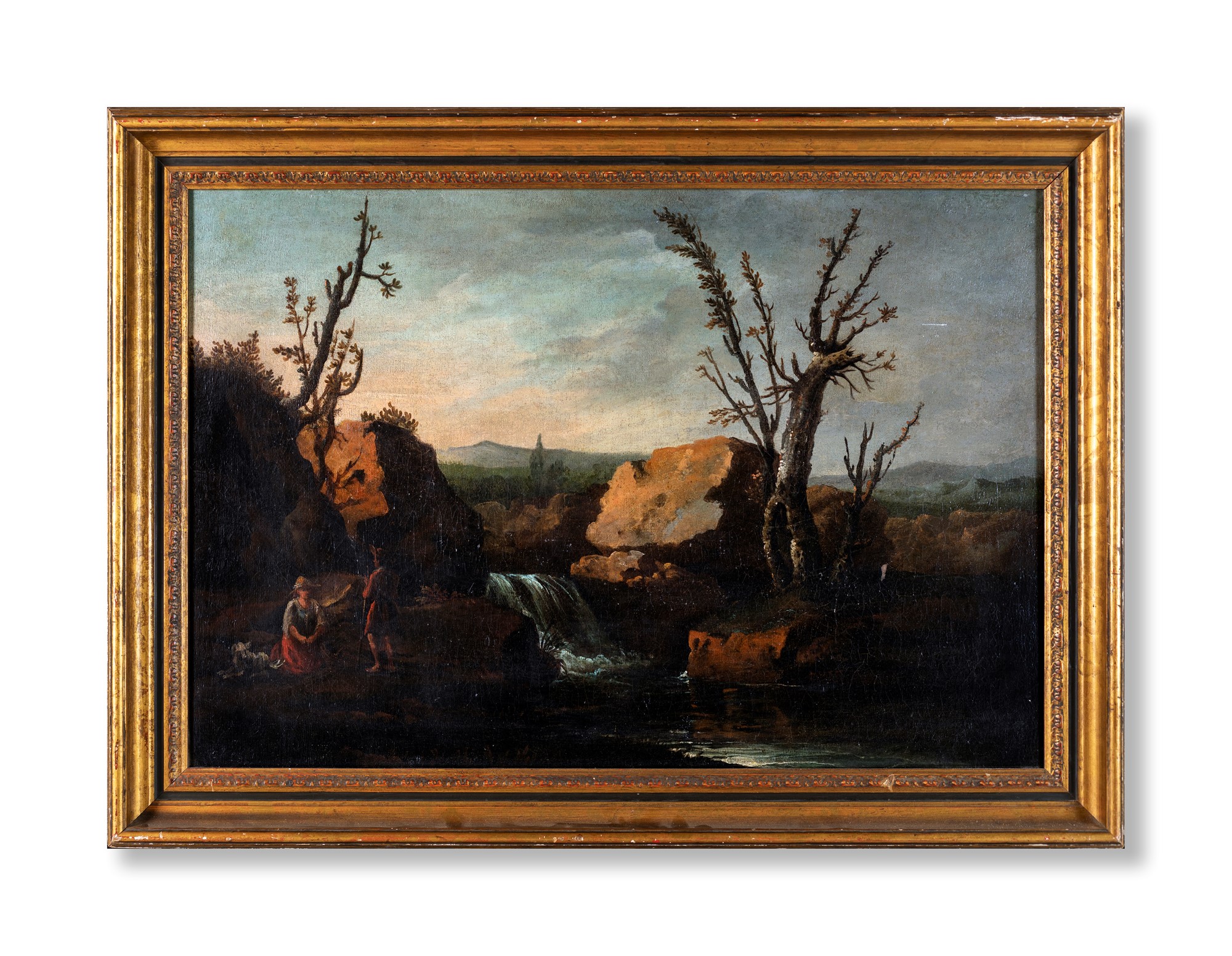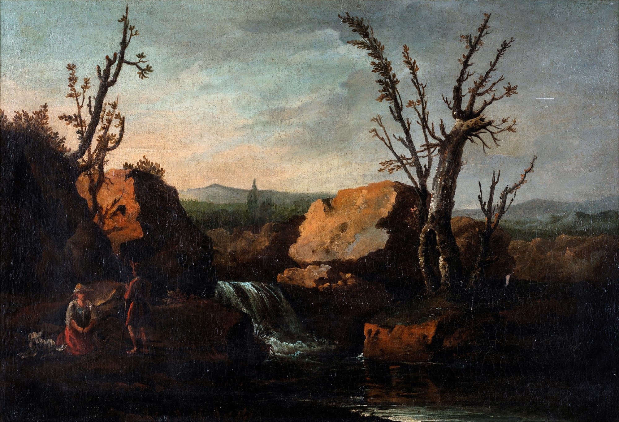 Alessio De Marchis - Paesaggio fluviale con figure - olio su tela - cm 70x103