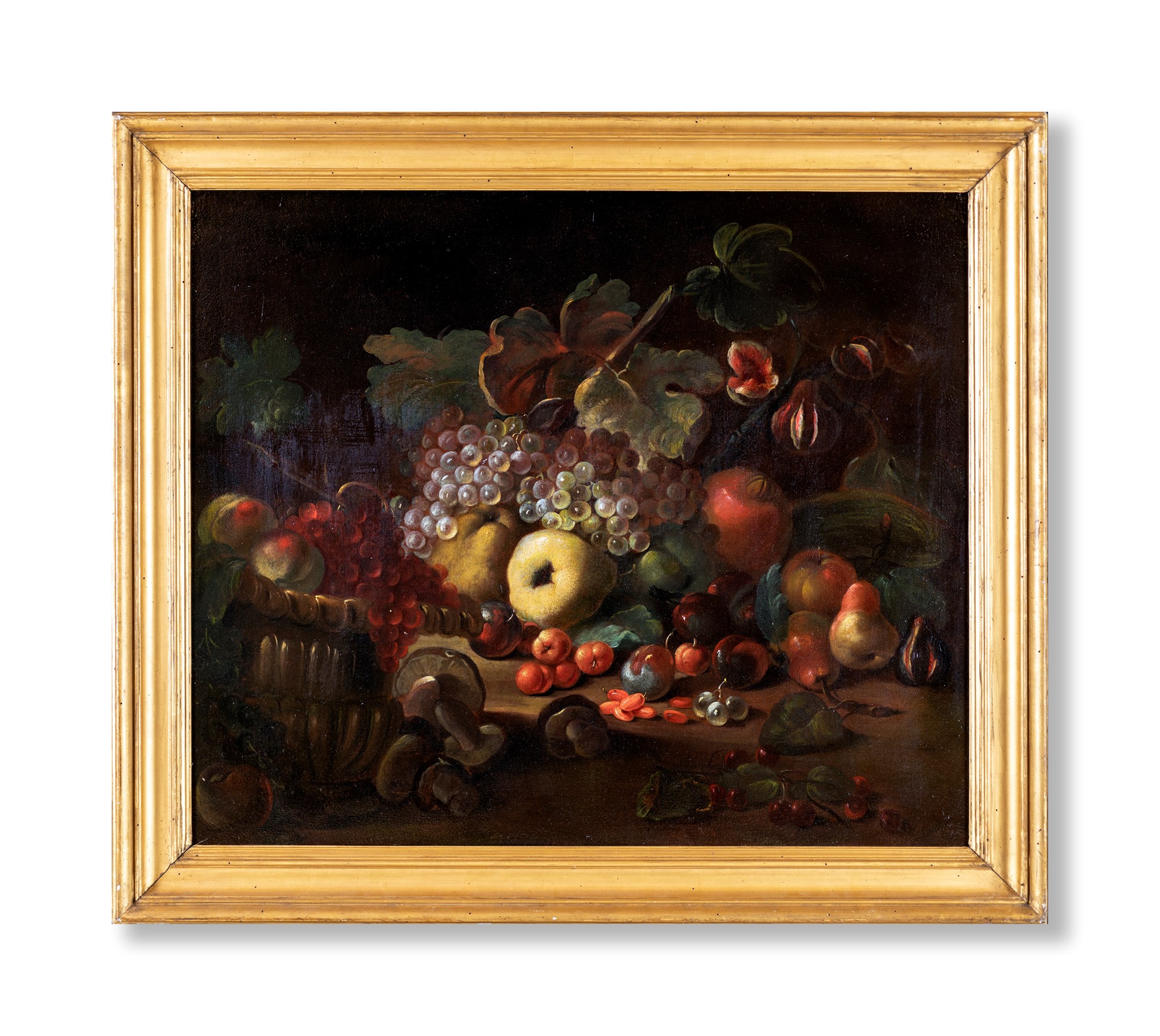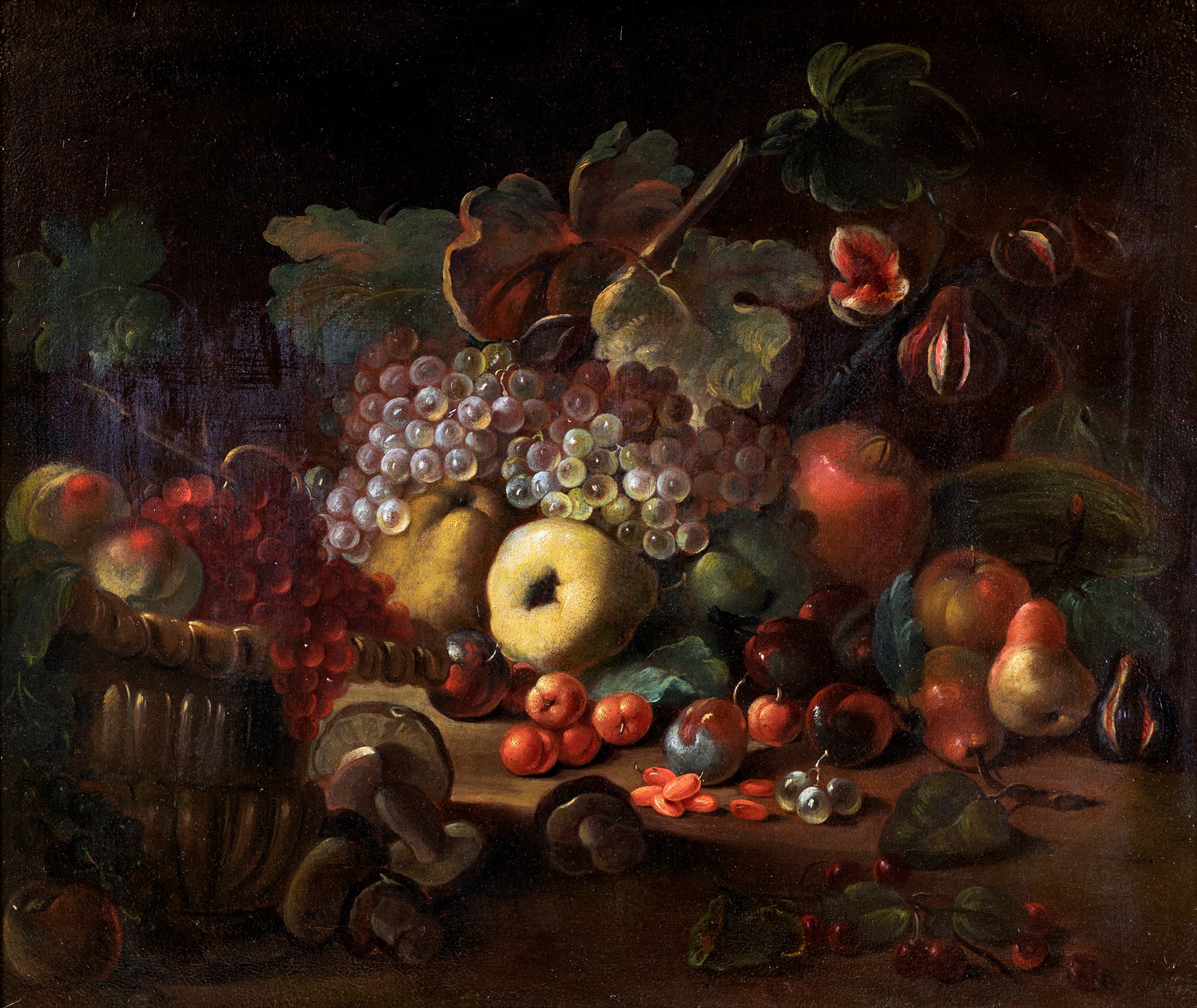 Scuola romana del XVII secolo - Natura morta di frutta e funghi - olio su...