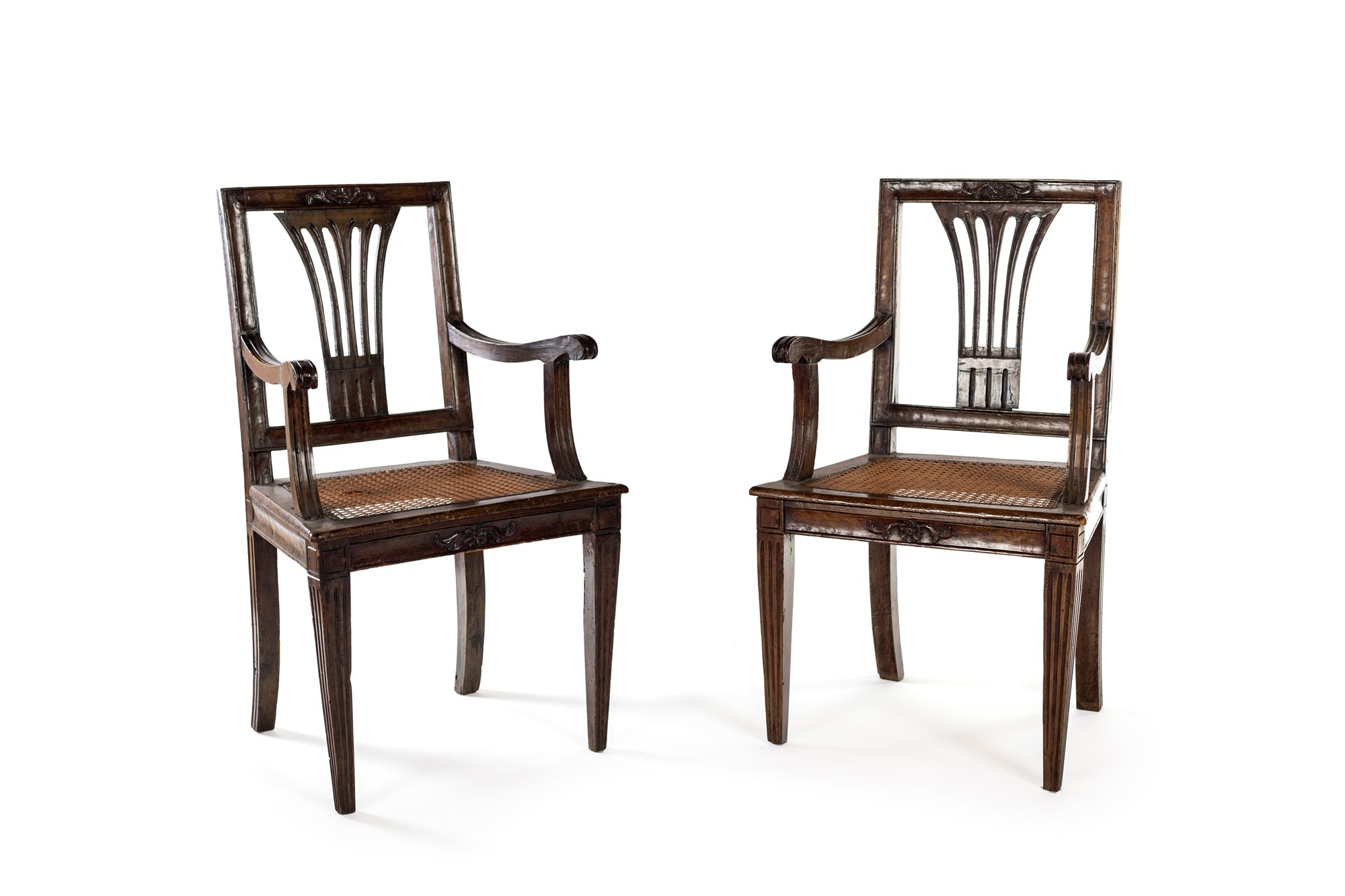 Lot 48 | Coppia di poltroncine in noce, fine XVIII secolo - di linea squadrata con...