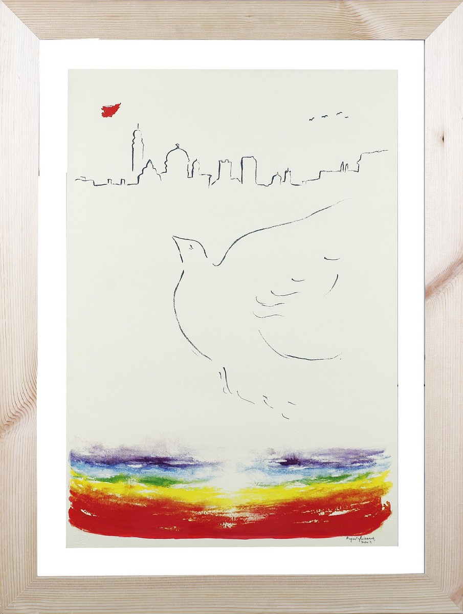 SCIACCA AUGUSTO (n. 1945) Il destino dell'uomo. 2003. Serigrafia ritoccata a mano. Cm 50,00 x 71,00. Firma e data in basso a destra. Al retro titolo data e firma dell'autore.