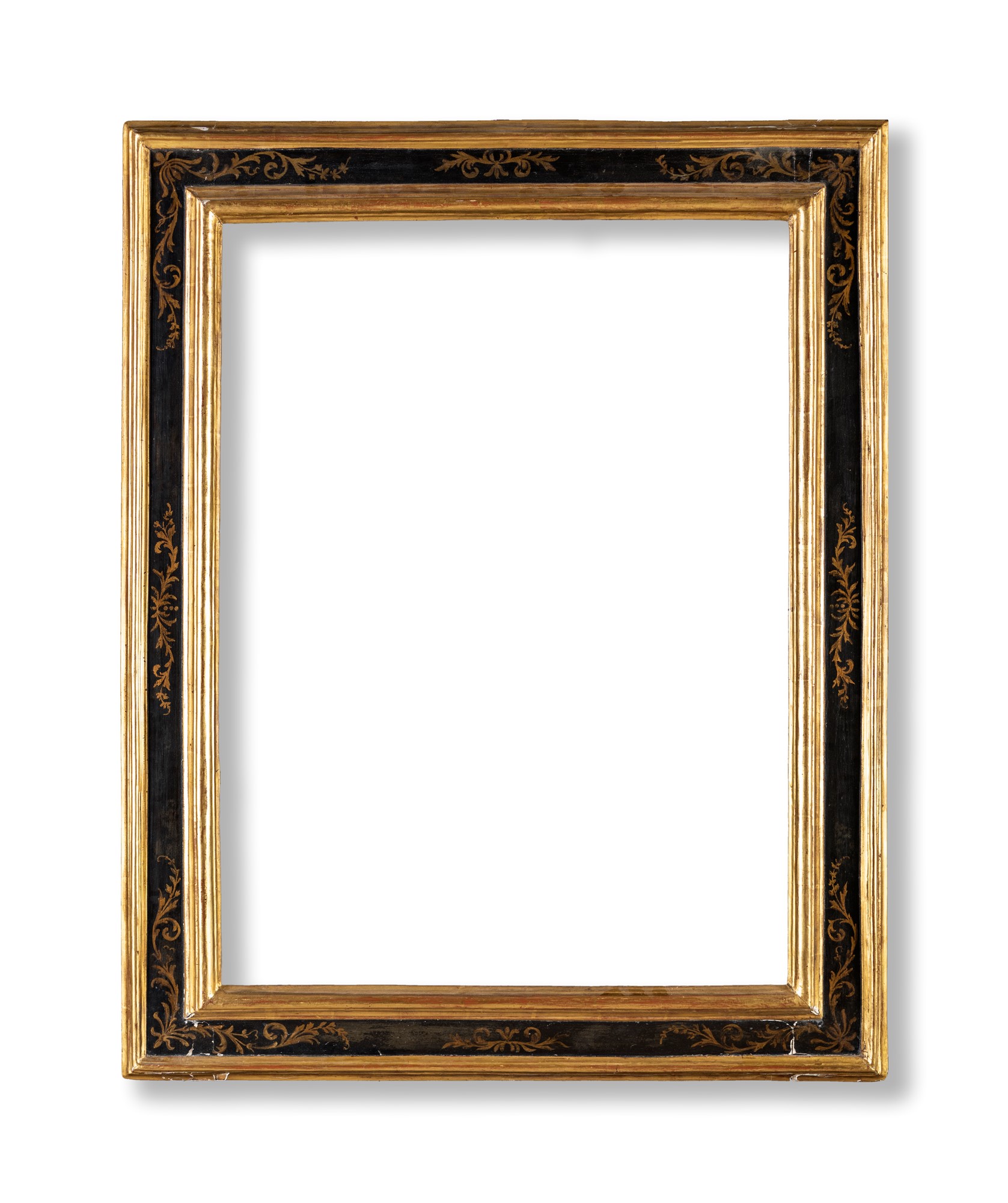 Cornice a cassetta in legno laccato e dorato, Toscana XVII secolo - Lievi difetti. - cm 123x97- luce interna 100x74