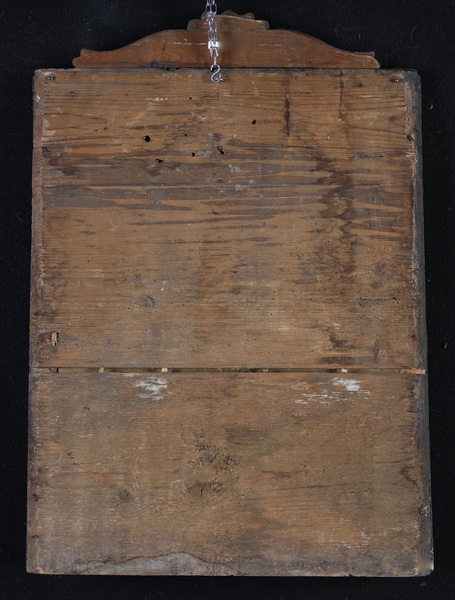 Pittore del XIX secolo - San Volfango di Ratisbona - cornice ebanizzata e dorata - olio su tela applicata su tavola - cm 76x57 - l'insieme cm 100x70