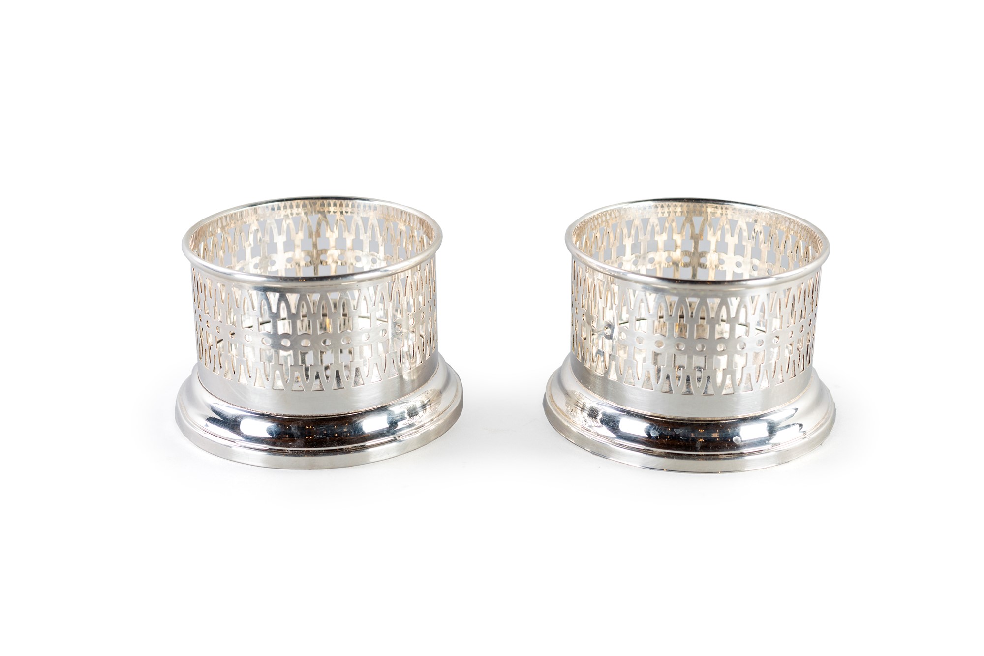 Coppia di sottobottiglia in argento 800/1000, Italia, Padova (?) - con piede gradinato e ringhiera traforata - cm 7,5x10