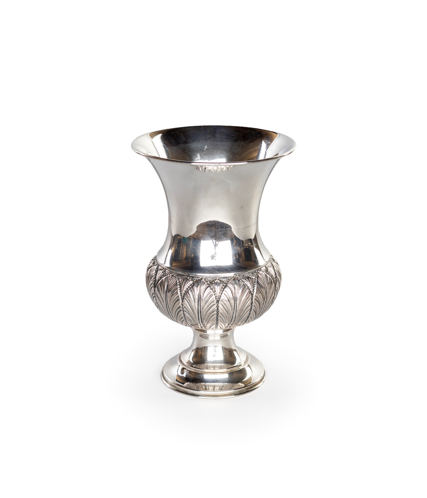 Vaso a cratere in argento - con decorazione a palmette e piede circolare - cm 22,5 - gr. 448