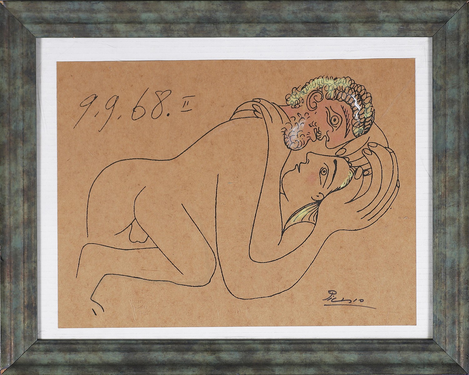PICASSO PABLO (1881 - 1973) Sena titolo. Serigrafia. Cm 39,50 x 30,00. D'apres. Timbro a secco in basso a sinistra - Picasso Erotique, Art Gallery Etoile, Paris. Cornice presente