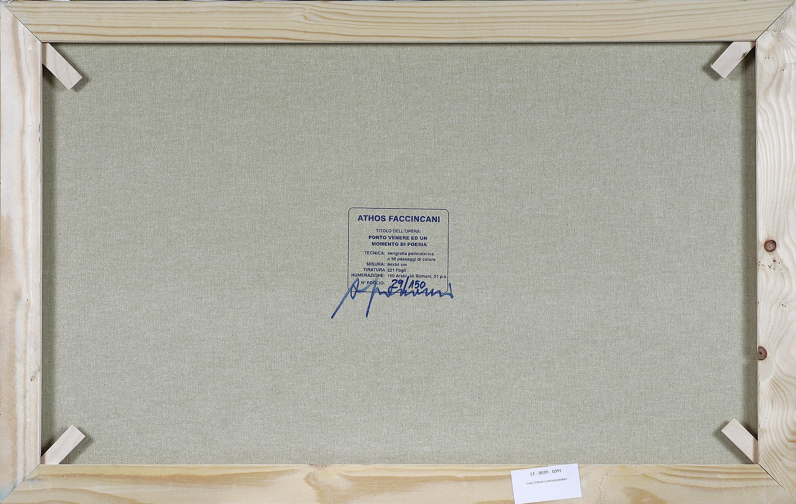 FACCINCANI ATHOS (n. 1951) Porto Venere in un momento di poesia. Serigrafia su tela. Cm 84,00 x 54,00. Edizione 150+ L+21 P.A. Esemplare: 29. Firma al retro.