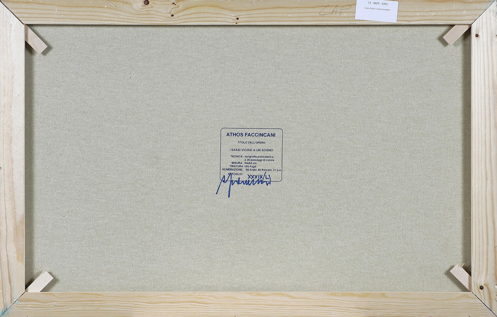 FACCINCANI ATHOS (n. 1951) I sassi vicino a un sogno. Serigrafia su tela. Cm 84,00 x 54,00. Edizione 150+ L+21 P.A. Esemplare: XXXIX. Firma al retro.