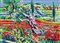 FACCINCANI ATHOS (n. 1951) Luce sole alto e colori intorno ad un ulivo. Serigrafia su tela. Cm 35,00 x 25,00. Edizione 150+ L+21 P.A. Esemplare: 18. Firma al retro.