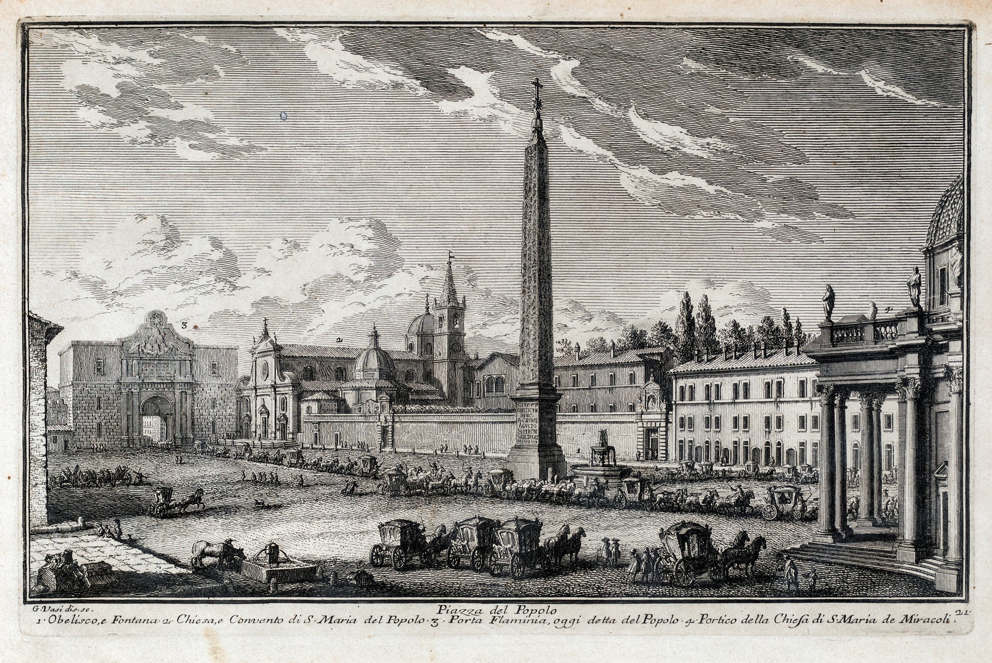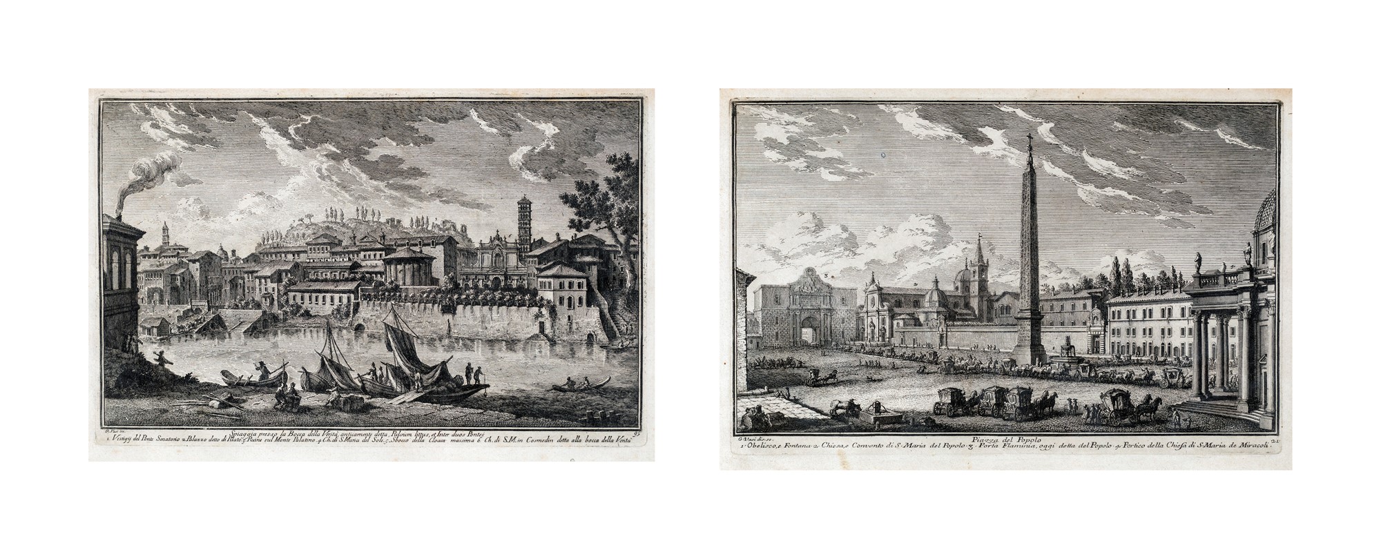 Giuseppe Vasi - a) Spiaggia presso la Bocca della Verità b) Piazza del Popolo -