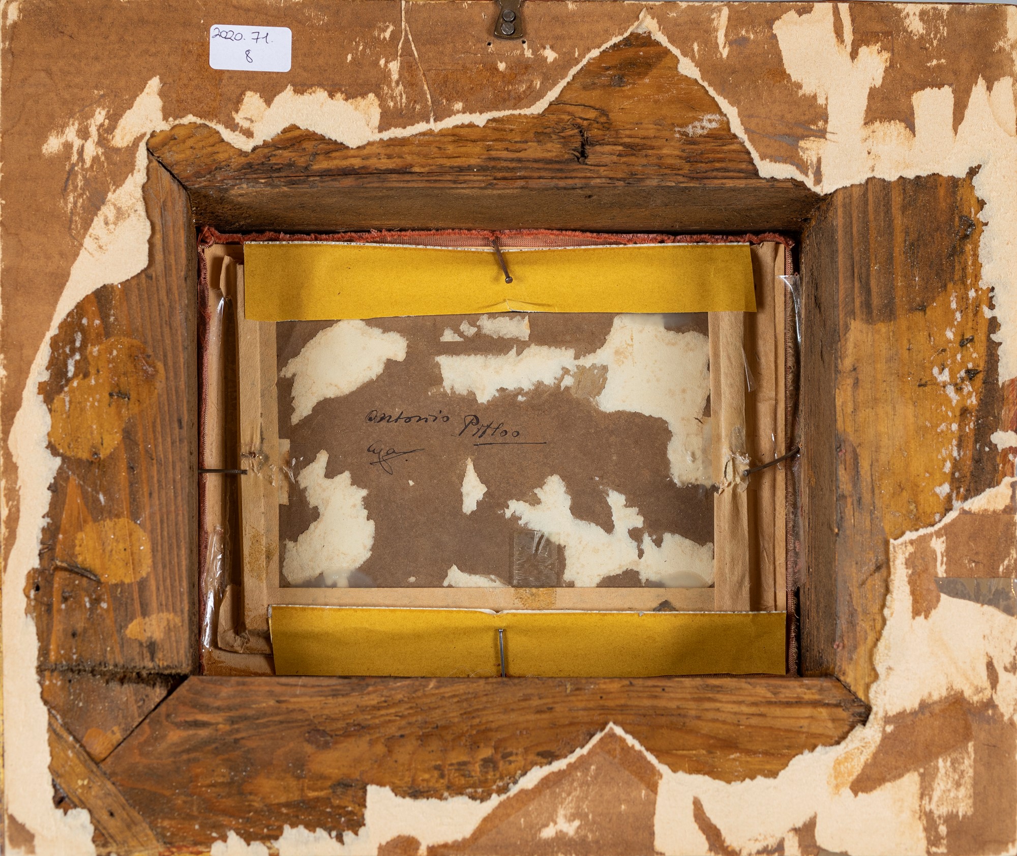 Anton Sminck Pitloo - Borgo di Napoli al tramonto - acquerello su carta - cm 11x16