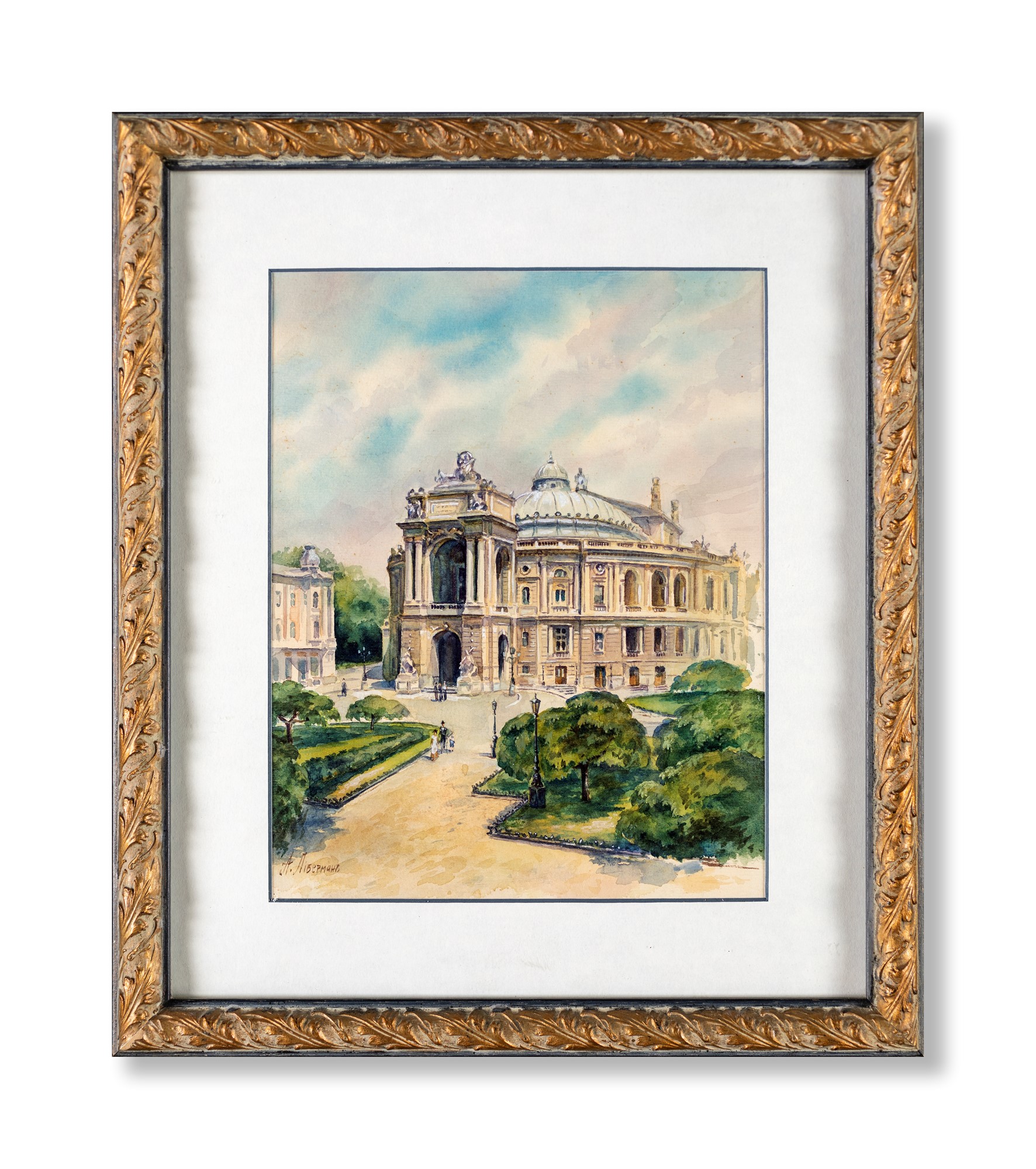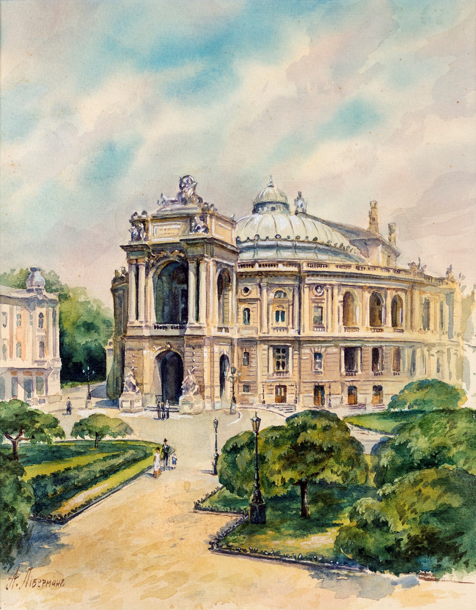 Scuola tedesca del XIX secolo - Teatro nazionale dell'opera e del balletto di Odessa - Firmato in basso a sinistra: A. Liebermann - acquerello su carta - cm 28x20
