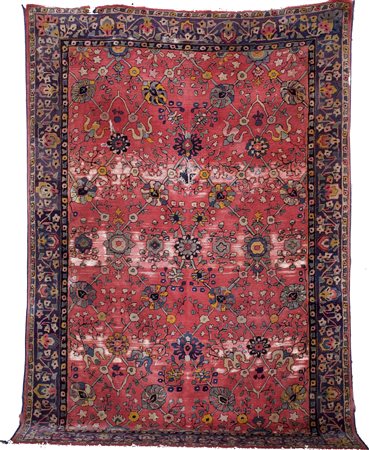 Tappeto fondo rosa - decorato a motivi floreali sparsi. Difetti - cm 265x185