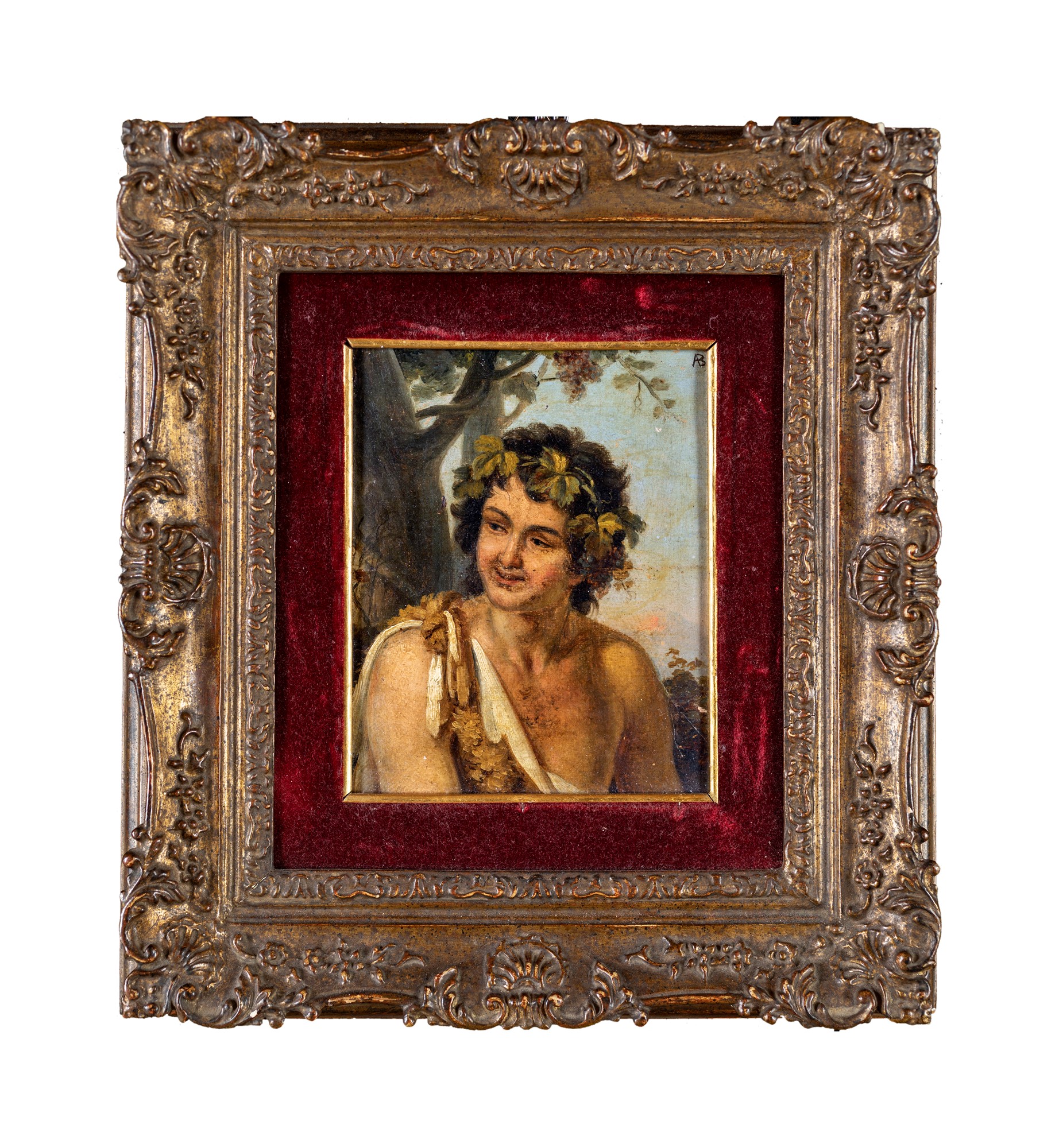 Alessandro Battaglia - Bacco - Siglato in alto a destra: AB - olio su tela - cm 19x15