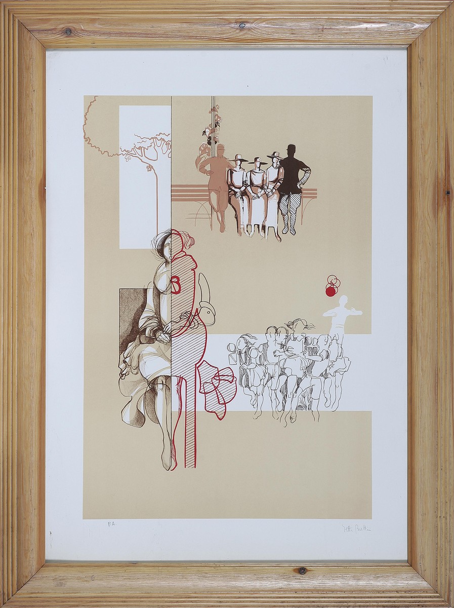 BUTTINI IETTA Senza titolo. Litografia. Cm 50,00 x 70,00. P.A.. Firma e tiratura in basso. Timbro a secco Litoinvest Milano in basso a sinistra. Al retro cartiglio Litoinvest Milano. Cornice presente